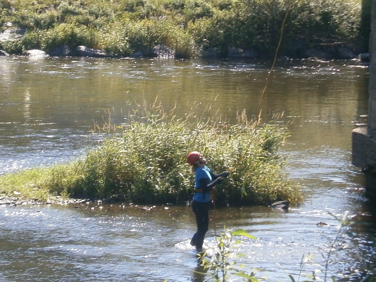 Panovalo letní slunečné počasí. Soutěžící museli po slanění brodit na druhý břeh (pohled ze silnice), kde všichni museli povinně obléci vesty, a poté až stáhnout raft. Dále po vyzvednutí plného barelu se na tomto břehu i přistávalo a opět se muselo brodit na druhý břeh, kde se prováděla simulovaná masáž srdce a transport zraněného. Ženy přenášely nosítka prázdná. Poslední zastávkou, kde už soutěžící obvykle melou z posledních sil, byly kýble. Muži museli naplnit celý barel, ženy přinést 4 kýble vody. Každé družstvo se ještě před startem podrobuje testu na alkohol.