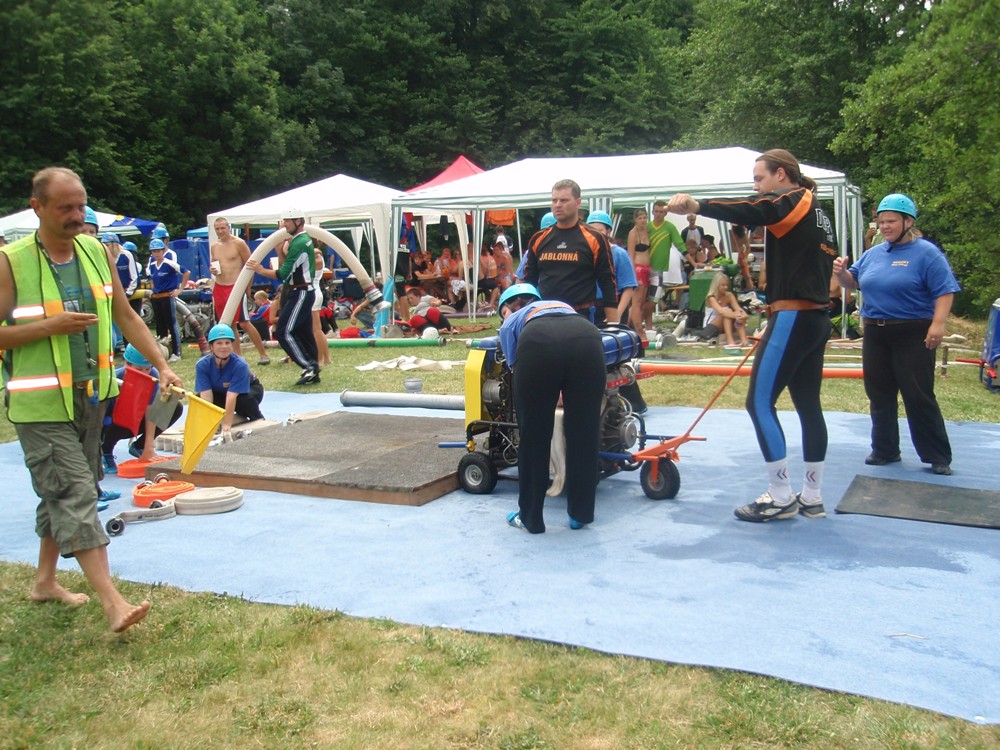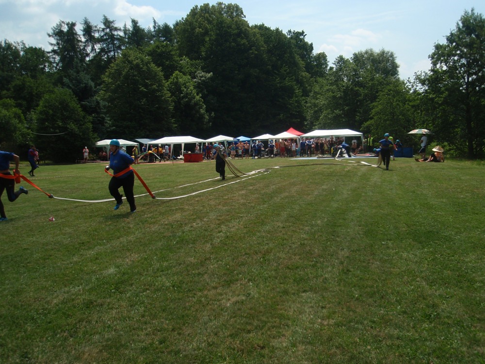 Po česnečce od pana domácího jsme se vydali ve stejném složení Na Valchu. Stejně jako předchozí den jsme nejdřív postavili stany, vyložili nádobíčko, nafoukly dětem bazének a ochotní kluci nanosili vodu. Někteří se museli nejprve zchladit a protože se do bazénku vešlo více lidí najednou, tak toho náležitě využili. Ti, na které se nedostalo, skončili v jedné ze dvou kádí. Devatenácté místo nám připadlo při losování. Nádherný čas 21,19s nám zaručoval postup do play off, dokud nenastoupila děvčeta z Radětic a na světelné tabuli se po sestřelení terčů neobjevil čas o 8 setin lepší, tedy 21, 11s. Tímto časem nás radětické odsunuly na konečné 5. místo.