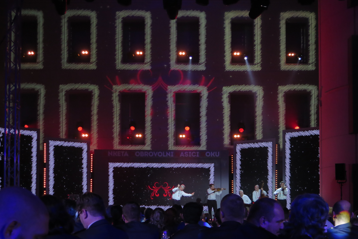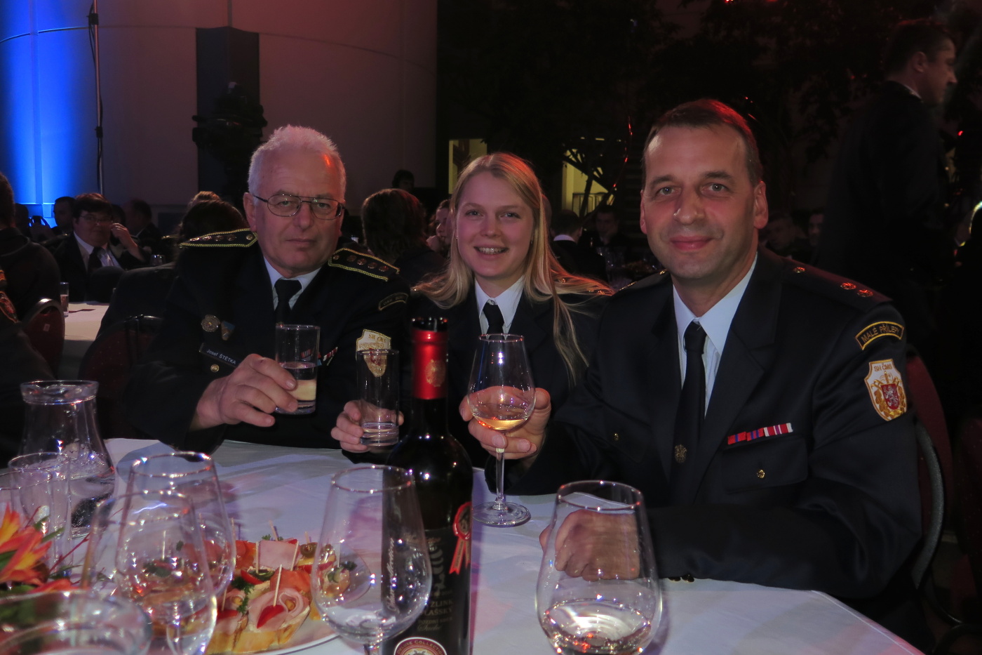 Nechtěli jsme přijet pozdě tak jsme vyrazili se značným předstihem ve 13:30 a měli jsme tak v Brně dostatek času na pozdní oběd v restauraci U Lucerny a nutno přiznat, že jsme si všichni skutečně pochutnali a stihli jsme se včas přesunout do dvorany. Hned nám bylo jasné, proč byla pozvánky pro sbory omezena na 3 zástupce. Letošní anketu moderovala známá a příjemná moderátorská dvojice Marek Eben a Tereza Kostková. Profesionalita této moderátorské dvojice byla v průběhu večera několikrát prověřena při některých neplánovaných situacích a nutno přiznat, že zrovna ty neplánované situace zaznamenaly největší úspěch. Slavnostní večer zahájila patronka akce Ilona Csáková novou písní složenou pro hasiče.