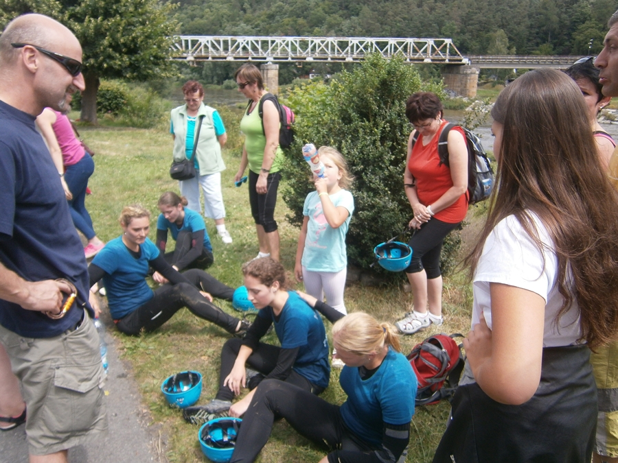 První z našeho sboru nastoupili na start muži. Slanění z mostu proběhlo dobře, jízda na raftu se také celkem podařila. Ale málem minuli lano, přejeli barel a proud je strhával. Nicméně zabojovali, udrželi raft proti proudu a barel vyzvedli jen taktak. U zdravovědy nebylo co vytknout. Kýble už byli opravdu dno sil, přesto je muži zvládli a za obrovské podpory fanoušků doběhli do cíle. Výsledkem bylo 6. místo s časem 11:59 min. Za ženské družstvo běžely Káťa a Verča tuto soutěž úplně prvně. Nicméně se nenechaly zaskočit. Všechny čtyři zvládly slanění velmi dobře. Zaváhaly však při jízdě na raftu, kde se pro oko diváka dvakrát ladně otočily, aby následně vyzvedly barel a spěchaly na vylodění. Brodění na druhý břeh nebylo, kvůli silnému proudu, vůbec příjemné. U zdravovědy musely holky více zaklonit hlavu figuríny, aby správně provedly umělé dýchání. Následovaly kýble a opět doběh do cíle s nosítky a fanoušky za zády. Holky vybojovaly 1. místo, čas 11:27 min.