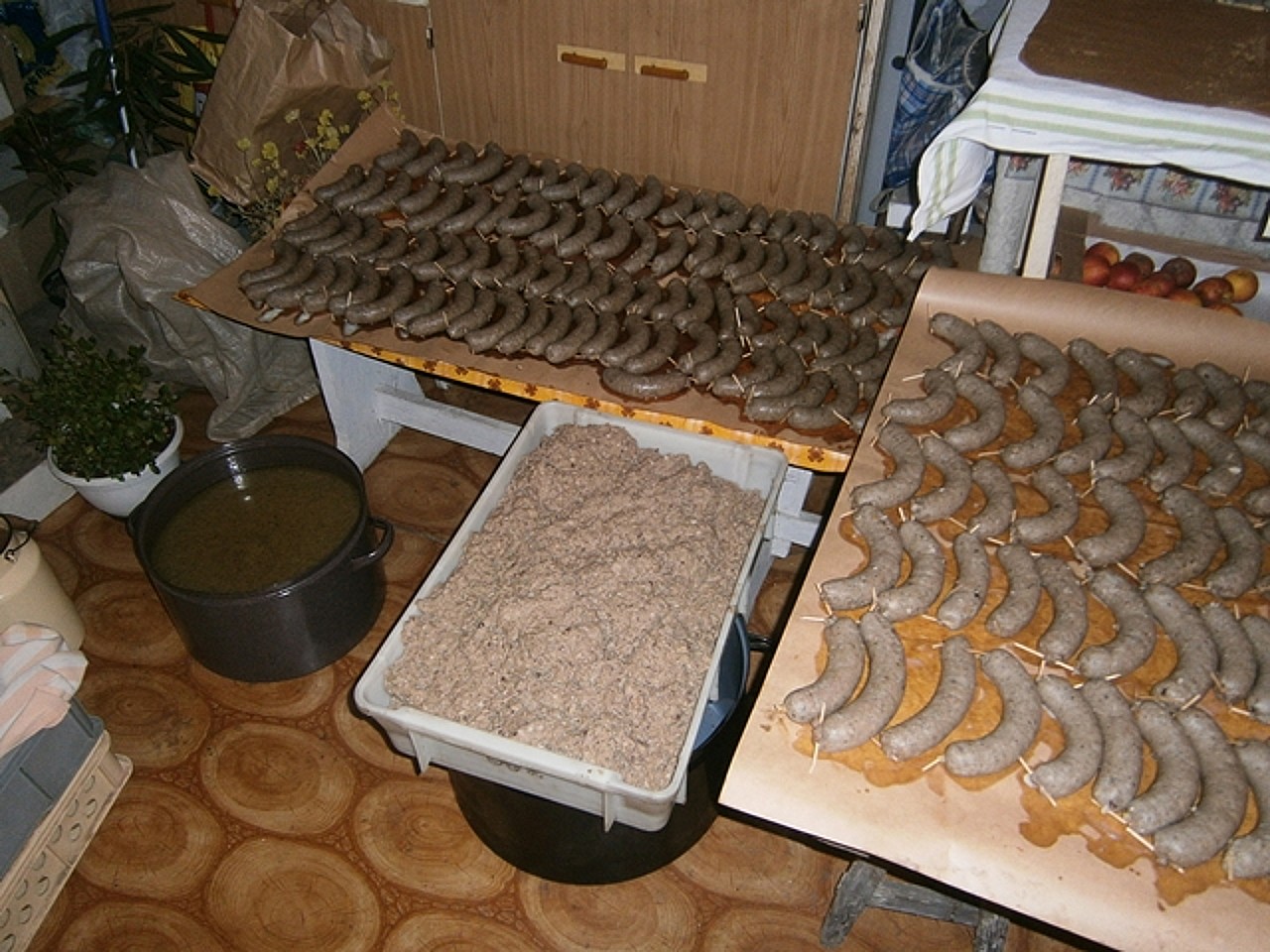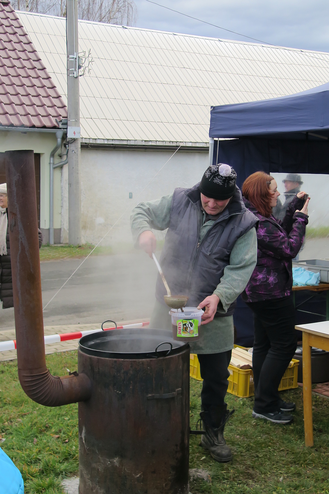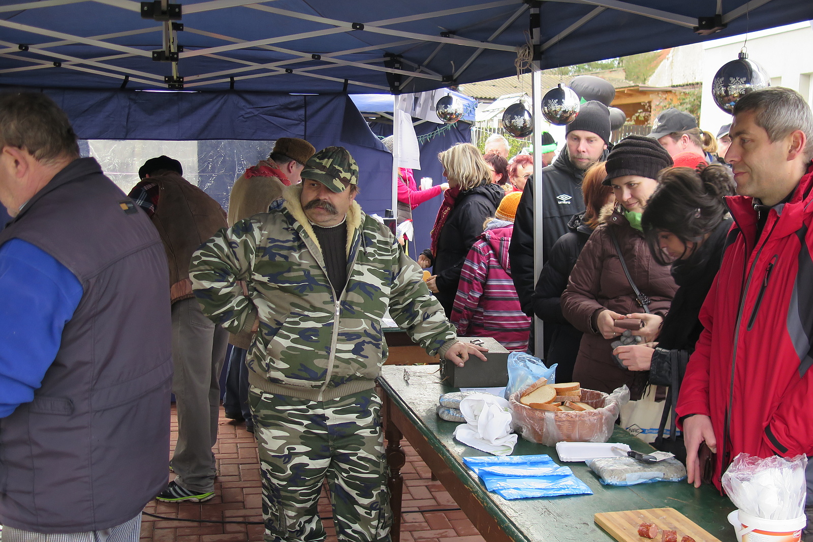 Vzhledem k pozitivním ohlasům na loňské zabijačkové hody se organizátoři rozhodli toto opakovat a návštěvníci akce si tak mohli pochutnat na černé polévce, tlačence, jelitech či jitrnicích. I přes navýšené množství těchto pochutin, bylo opět rychle vyprodáno. Pro umocnění vánoční atmosféry zahrála Míša několik koled, které si s ní všichni přítomní rádi zazpívali a vše jen korunovala vůně svařáku. Velké díky si opět zaslouží Pavel, Jirka, Čáník a Petr, kteří se postarali o tyto zabijačkové dobroty a samozřejmě i každý, kdo přiložil ruku k dílu při stavbě stánků, sezení a následném úklidu.