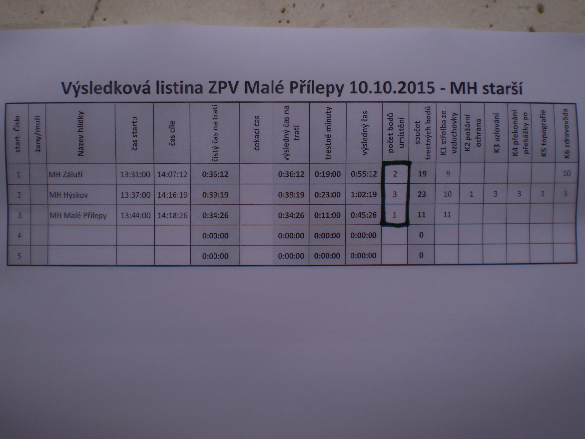Závod požárnické všestrannosti Malé Přílepy – 10.10.2015