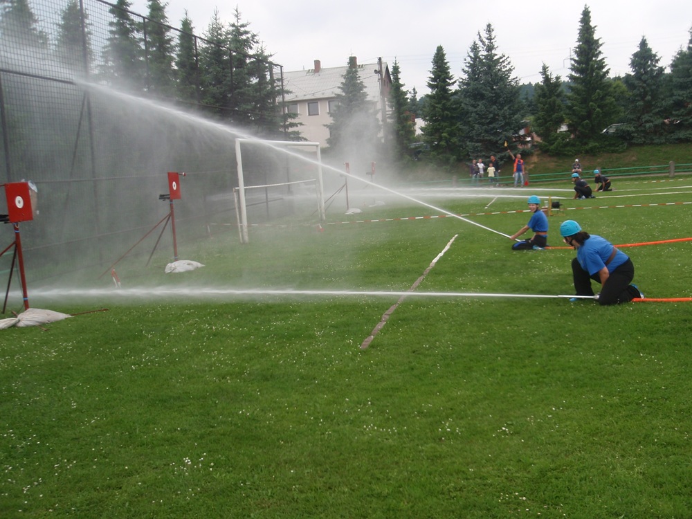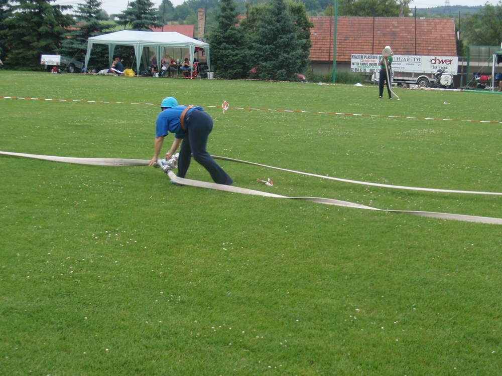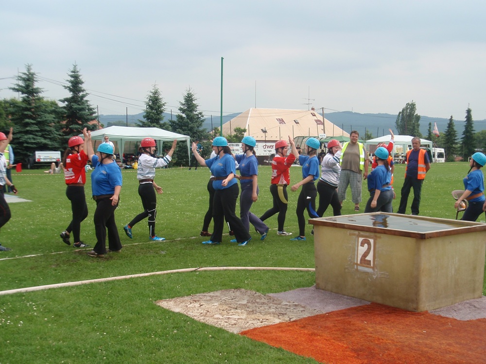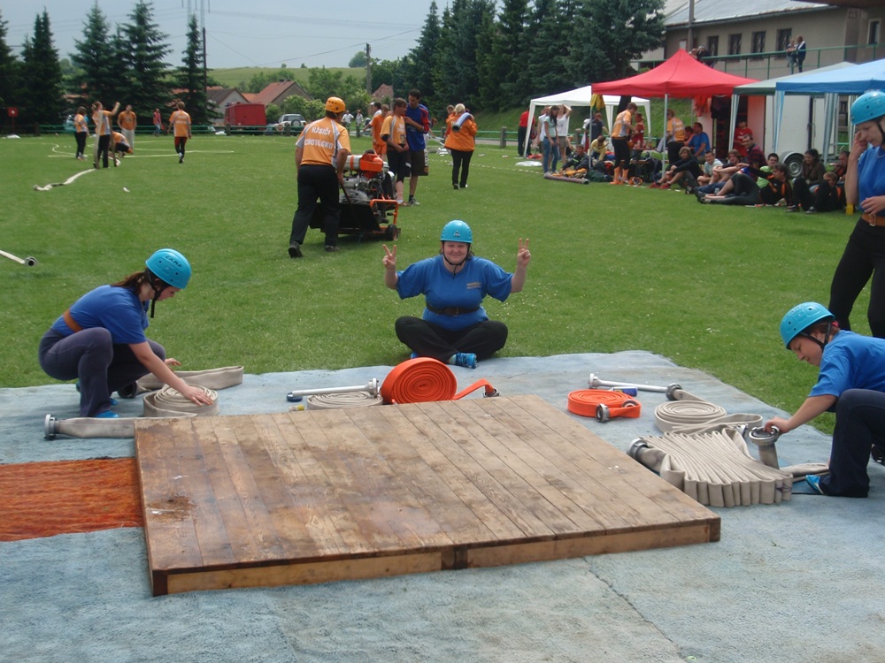 Po vydatné snídani družstvo žen, povázeno několika věrnými fanoušky, odjelo vytvořit svůj osobní rekord do Bojanovic. Také zde bylo nahlášeno 10 družstev žen. Po zaznění státní hymny a přivítání družstev, proběhlo losování pořadí útoků. Opět jsme útočily ze zadních pozic, vylosované číslo 22 k tomu přímo vybízelo. Možná to byly právě dvě dvojky, které nám zaručily postup do play off. Základní kolo se některým družstvům nepodařilo tak, jak by si přála a náš čas 20,93 s nás opravňoval k postupu ze druhého místa. Našimi soupeřkami byla děvčata z Dolních Měcholup. Z tohoto družstva má naše modré družstvo, mimochodem některá měcholupská děvčata reprezentují kraj na republikových soutěžích, respekt. Možná respekt zavinil, že jsme měcholupské porazily a postoupily do boje o první místo. V tomto útoku si levý proud vytvořil osobáček, který ještě v boji s únětickými děvčaty ve finále vylepšil na konečných 19,03 s.