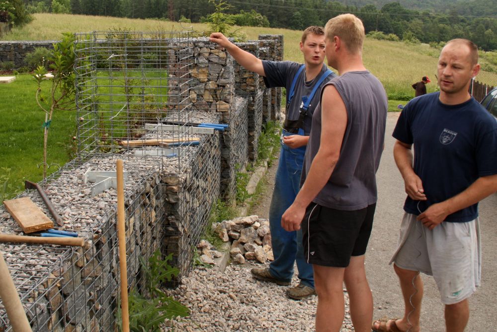 Vzhledem k drobnému informačnímu šumu nastoupila pracovní četa s přibližně 24-hodinovým zpožděním, ale to se rychle vysvětlilo. Pro narovnání bylo potřeba rozebrat poškozenou část sloupku, jelikož jsme si neudělali skladební plán tak je opravený sloupek skutečně originál nikoli pouhá kopie původního sloupku. Každopádně bylo konečné dílo převzato do užívání. Po opravě sloupku jsme se přesunuli do hasičárny, kde Voříšek roztopil gril a tak nezbývá než poděkovat p. Špiritovi že nám couváním zajistil náplň na toto nedělní dopoledne :-) .