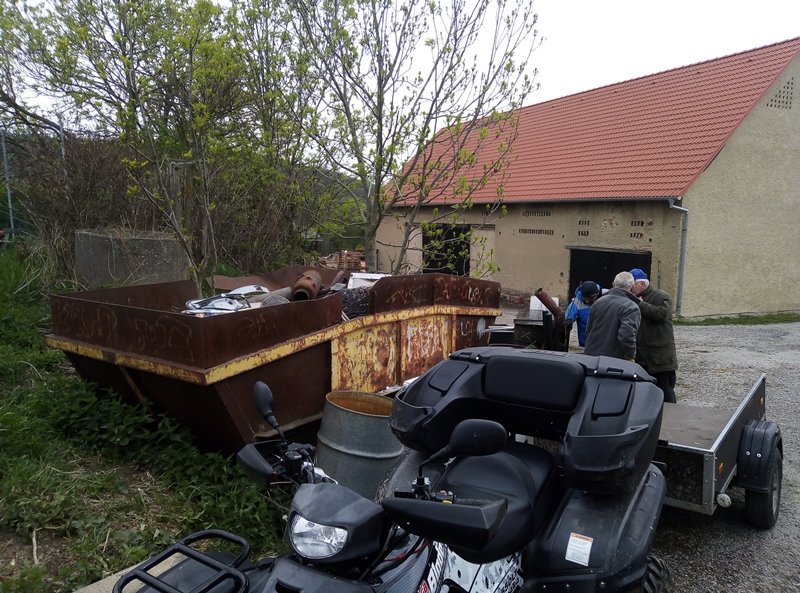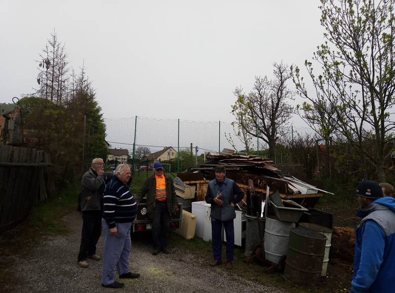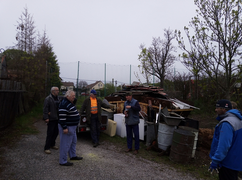 Několik členů se sešlo první květnovou sobotu před hasičárnou, aby se rozdělili do dvou čet a sebrali po obci nepotřební železný šrot.