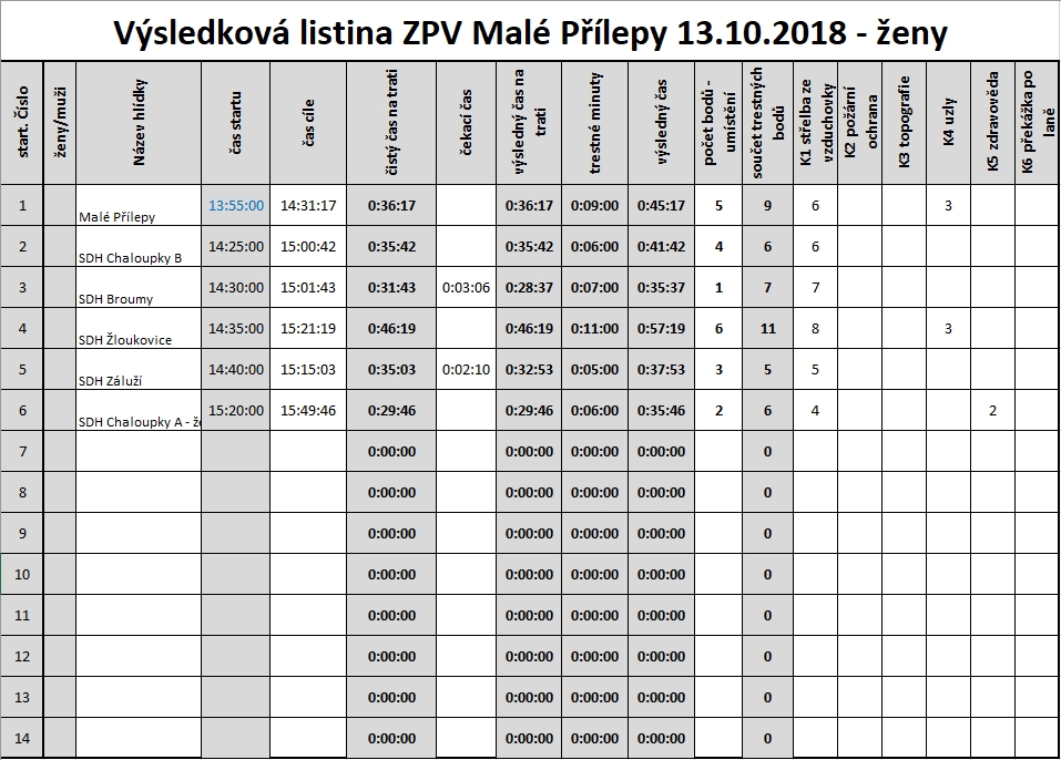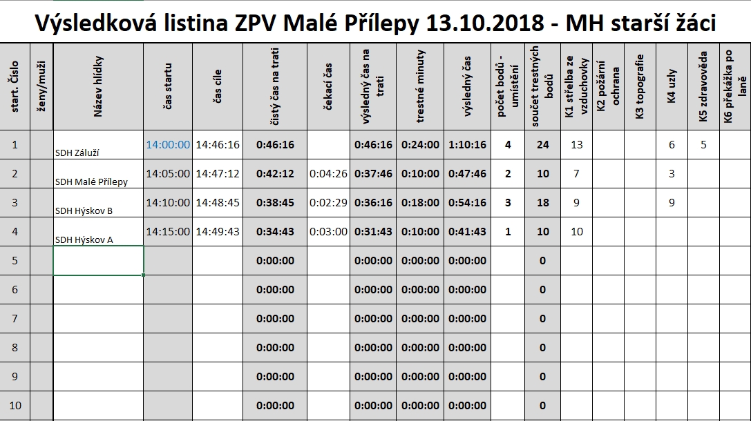 Závod požárnické všestrannosti Malé Přílepy – 13.10.2018