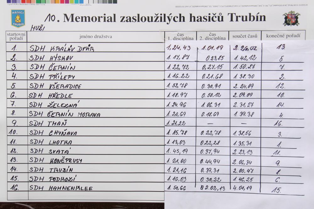 12. 6. 2010 - 10. ročník Memoriálu zasloužilých hasičů v Trubíně