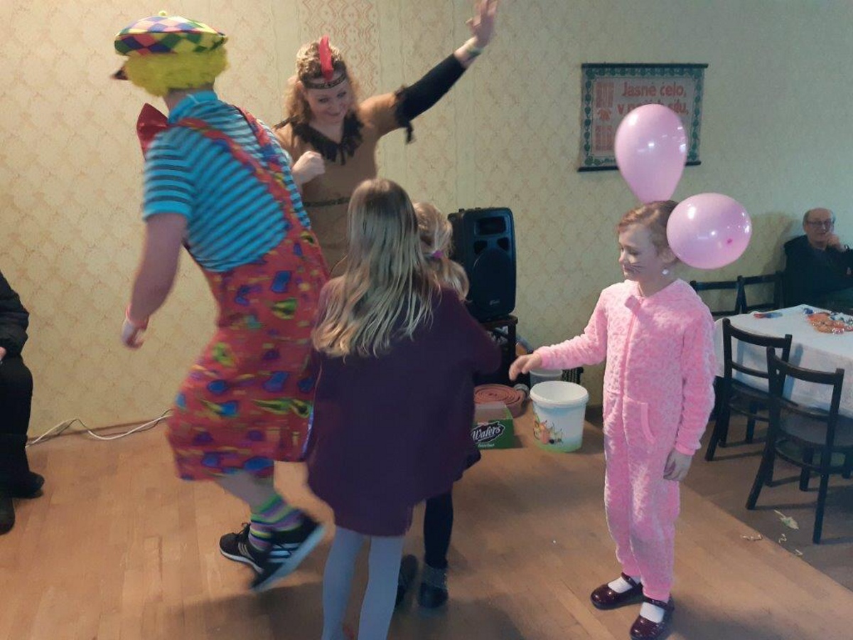 Protože se chtějí bavit i děti, upořádal pro ně sbor v neděli dětský maškarní karneval. Někteří z nás toho ani moc nenaspali a šlo se připravovat na sál vše potřebné. Úderem druhé hodiny odpolední proudily do hostince „U Vořechů“ davy rodičů a prarodičů, doprovázejících své ratolesti v rozmanitých kostýmech. Opět bychom nevybrali nejlepší masku, neboť všechny kostýmy byly úžasné. Karnevalem již tradičně provázel klaun Pohodička se svými pomocníky – pirátkou, indiánkou, šnečkem a beruškou. Děti se bavily, smály a soutěžily, za což si odnesly sladké odměny.