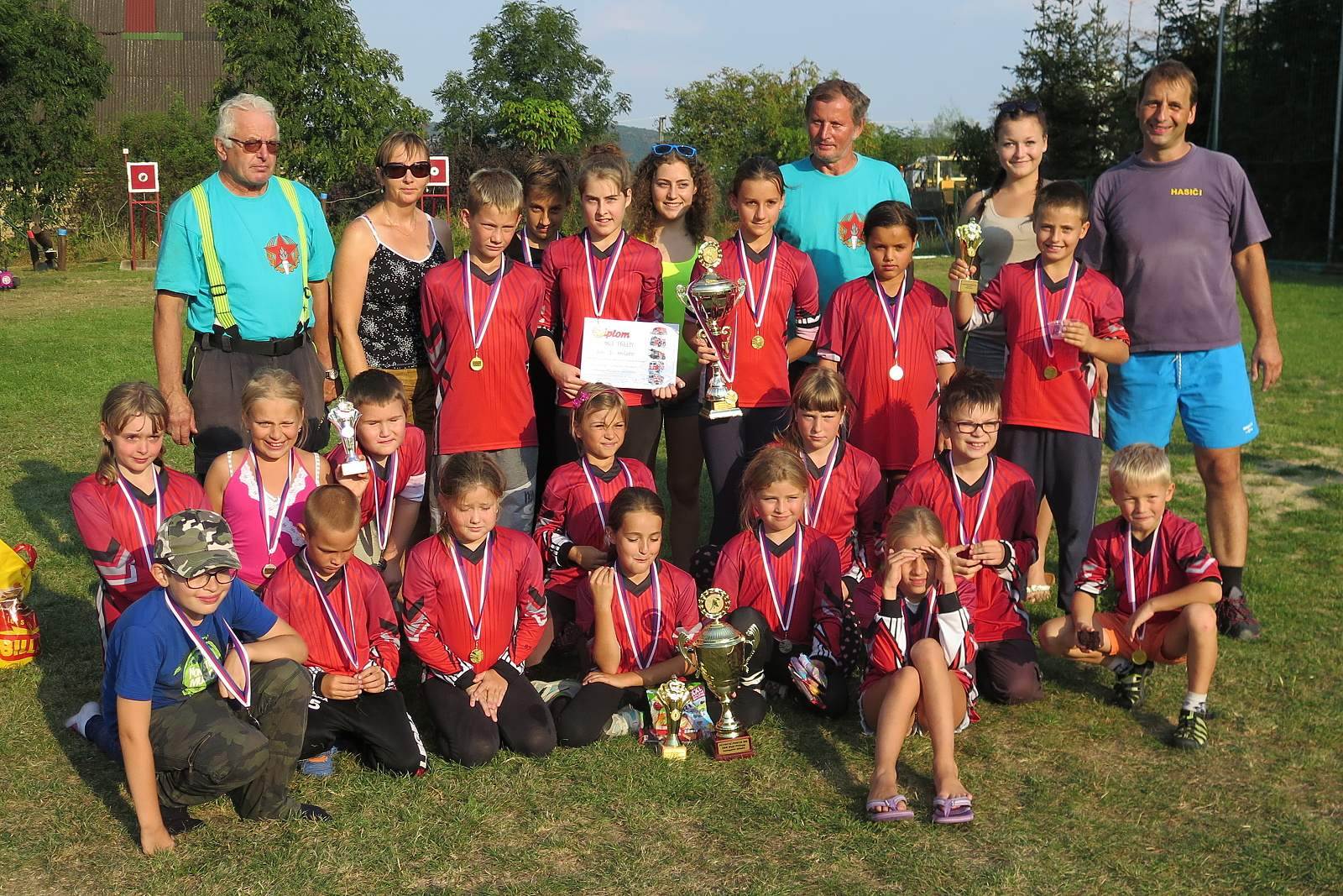 Deset let uteklo jako voda a letošního ročníku se poprvé neúčastní nikdo z dětí, které s námi začínali od úplného počátku. Naštěstí ne proto, že by je to s námi nebavilo, ale prostě už vyrostli a část z nich se přesunula k dospěláckým týmům, kde jsou silnou oporou soutěžních družstev jak mužů, tak i žen. Od prvního ročníku, kde jsme soutěžili v počtu tří soutěžních družstev, se počet soutěžních družstev ustálil na průměrném počtu okolo 10, což je tak akorát. Letošní soutěže se v kategorii přípravky účastnilo družstvo Hýskova a výkony nejmenších hasičů patřil určitě k nejvíce sledovaným a diváci určitě s obdivem i pobavením sledovali, jak nejmenší dětičky doslova vlečou hadice a ostatní nářadí k úspěšnému sestřelení terčů. Nejvíce vytížená byla kategorie mladších, kde soutěžilo celkem šest družstev ( 2x domácí Malé Přílepy, 2x Hýskov a 2x Tetín) a v kategorii starších soutěžily čtyři družstva (Malé Přílepy, Hýskov, Jánská a Záluží). Soutěž opět jako v minulých ročnících probíhala dvoukolově na jednu společnou stříkačku a o vítězi se rozhodovalo do posledního okamžiku. První kolo bylo spíš „zahřívací“, protože snad každé družstvo mělo nějaký menší nebo větší zádrhel a tak bylo jasné, že se bude rozhodovat ve druhém kole. Hýskovská přípravka si svým druhým pokusem vylepšila soutěžní čas na 74,89 sec. A děti si stejně jako minulý rok odvezli ceny za první místo. V mladších si polepšili všechna družstva kromě Hýskova „B“ a začaly posuny pořadí. Naše družstvo B, které po prvním kole nakonec posunulo družstvo A z prvního místa na místo druhé s rozdílem pouhých 0,37 sec. Což sice béčko určitě mrzelo, ale snad ne nadlouho. I všechny družstva starších zabojovala a všichni svoje pokus zlepšili. Jelikož jsme startovali první, tak nezbývalo než čekat jestli náš čas 21,64 bude stačit na vítězství nebo ne. Přece jen si dobře pamatujeme jarní kolo Plamenu, kde nás na druhou příčku v PÚ posunulo Záluží. Část družstva tak čekala u časomíry na poslední pokusy a podle jásotu po posledním pokusu bylo jasné, že to letos zase dopadne dobře. Takže letošní ročník jsme obsadili nejlepší možné umístění, jakého jsme mohli dosáhnout a putovní poháry ve starších a mladších se můžou zase rok lesknout v naší hasičárně.