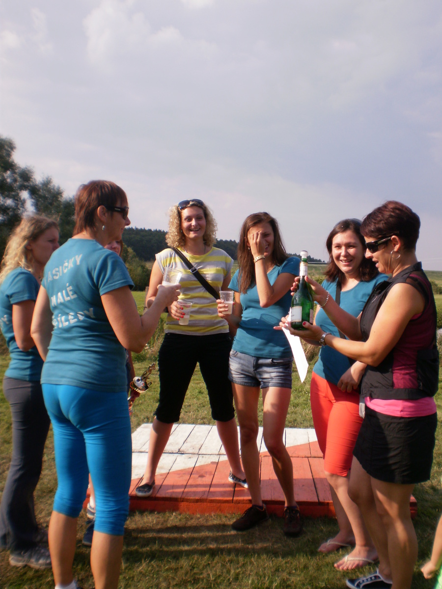 Po úvodním nástupu proběhlo losování startovních čísel. Opět jsem vylosovala číslo 1, ale protože naši muži měli v družstvu fotbalisty, kteří potřebovali odjet na zápas, vyměnili jsme si startovní pořadí. K dispozici byly dvě základny, a tak útoky plynule navazovaly.