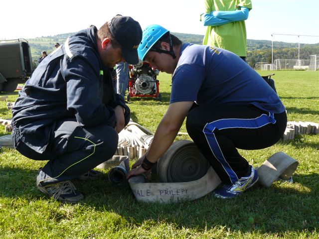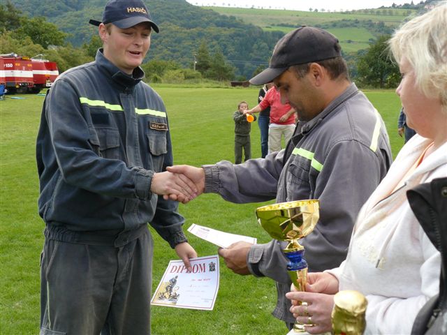 K poslednímu závodu sezony, v rámci bodování okrskové ligy, náš sbor zajížděl na hýskovské fotbalové hřiště. Zde místní hasiči uspořádali v pořadí již 7. ročník soutěže s názvem memoriál Tomáše Balka a Václava Vojty. Soutěž se skládala ze dvou kol. Jako první byla na programu netradiční štafeta, ke které nastoupili Pavel společně s Martinem Trynerem. Na prvním úseku měl Pavel za úkol překonat nejdříve příčné břevno a posléze i bariéru, poté předat pomyslný štafetový kolík Martinovi, který nejprve spojil dvě hadice "C", poté je rozpojil, uchopil hasící přístroj, který přenesl na určené místo a doběhl do cíle. Po drobném zádrhelu jsme se umístili po štafetě na pátém místě, což pro nás bylo zklamání. Video je ke shlédnutí zde. Nezbývalo, než vrhnout všechny síly do požárního útoku a pokusit se o co nejlepší čas. A to se nakonec povedlo. Po dobře provedené požárním útoku se časomíra zastavila na hodnotě 24,20 sec. Video je ke shlédnutí zde. Tento čas se již nepodařilo žádnému družstvu překonat, a tak jsme se mohli radovat alespoň z dílčího vítězství. V součtu obou disciplín jsme pak obsadili druhé místo a tím si připsali do bodování okrskové ligy čtyři body. Celkově jsme se v hasičské lize okrsku Chyňava umístili na druhém místě, hned za vítězným družstvem z Chyňavy. Za zmínku jistě stojí i to, že naše ženy z družstva "B" vybojovaly v Hýskově druhé místo, a tím si zajistily vítězství v letošním ročníku hasičské ligy, před družstvem z Chyňavy. Video z jejich štafety je ke shlédnutí zde a z požárního útoku zde.