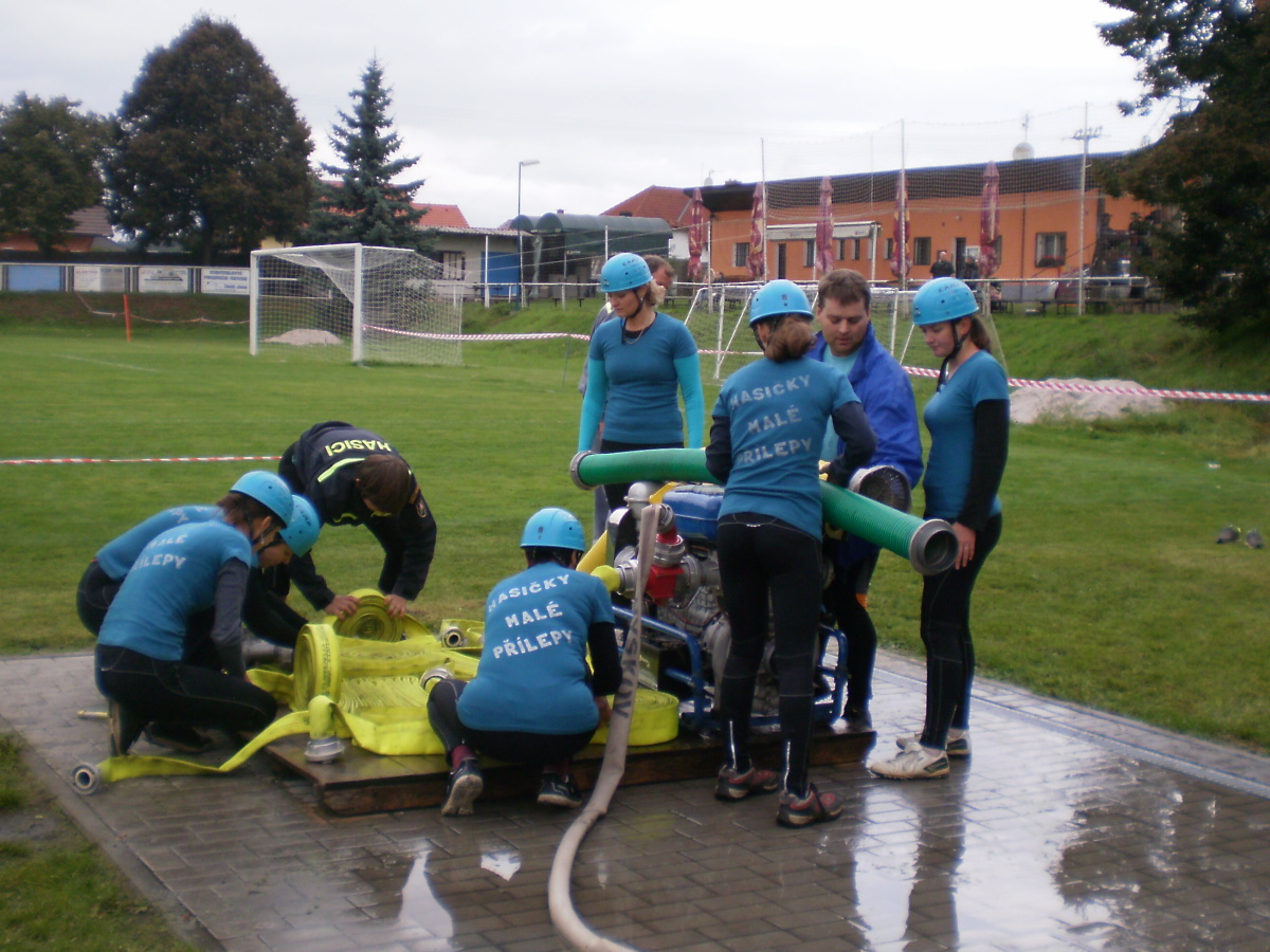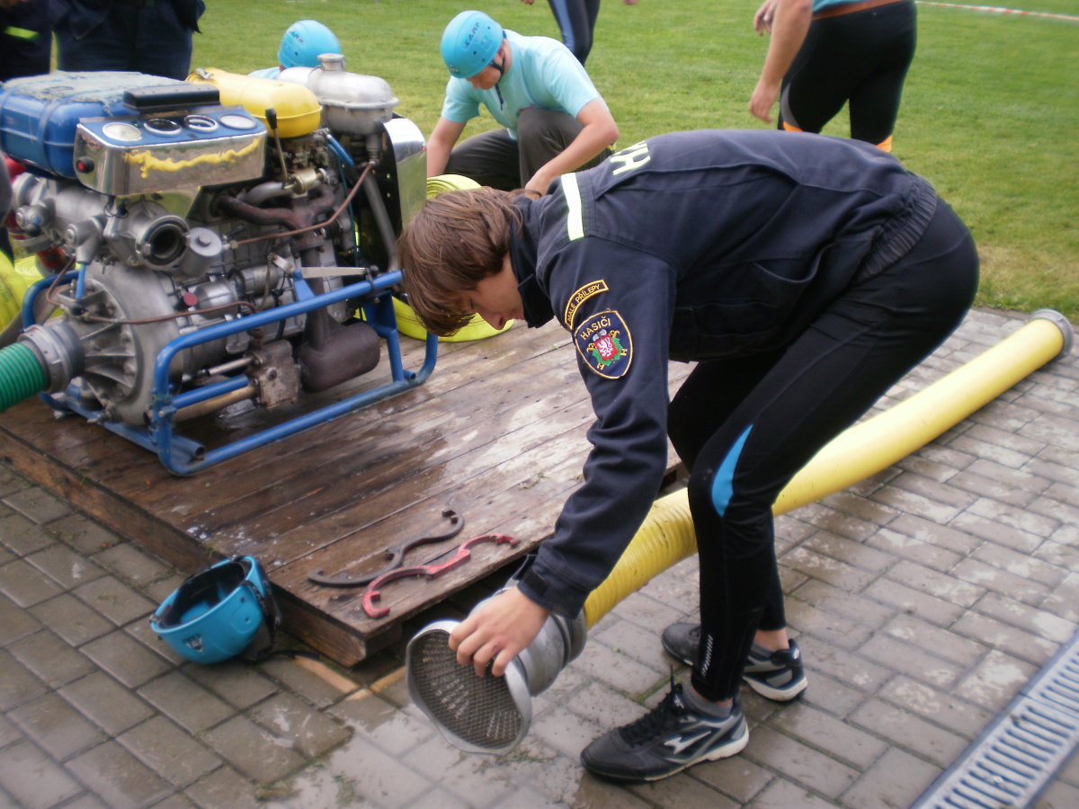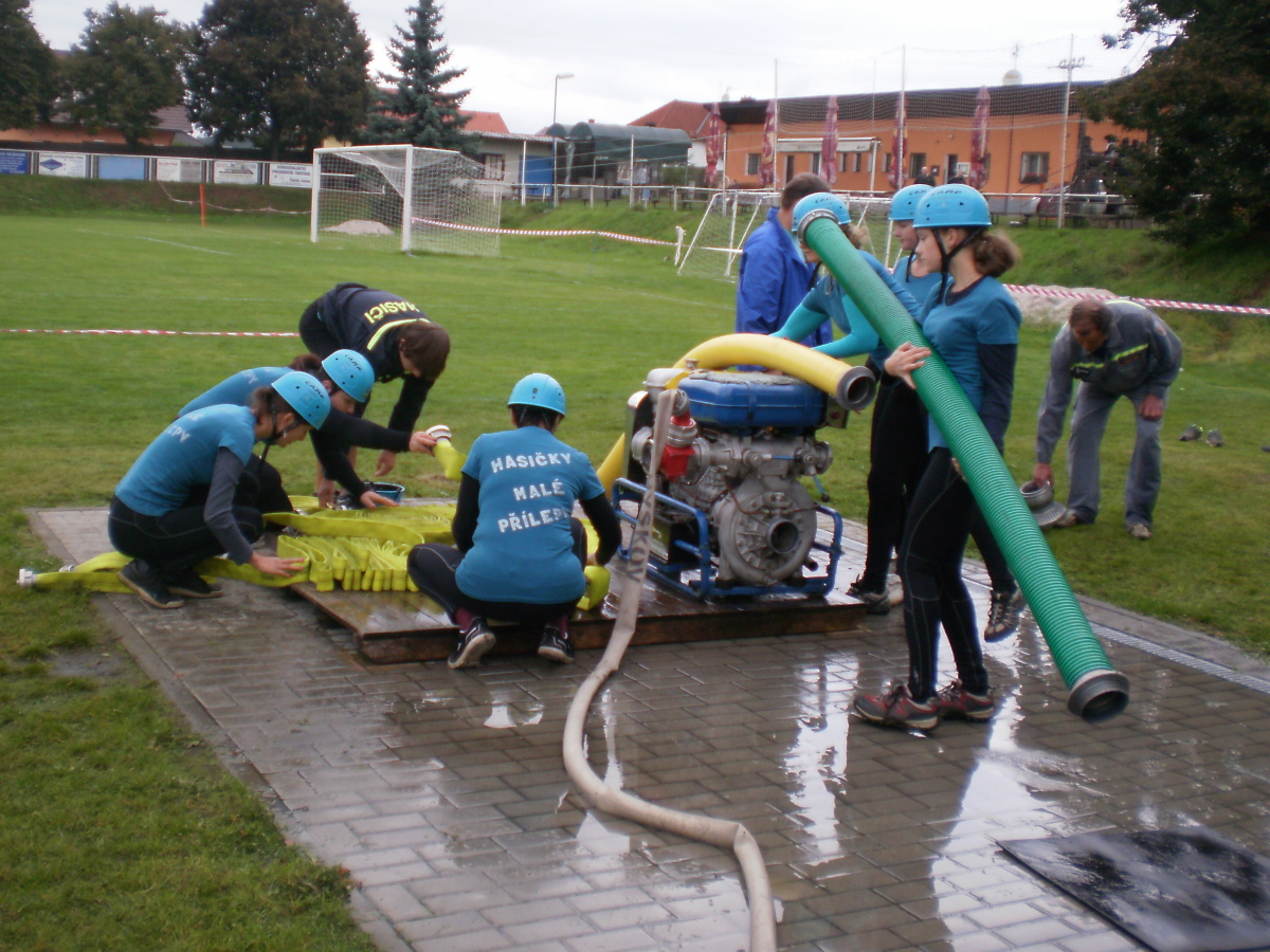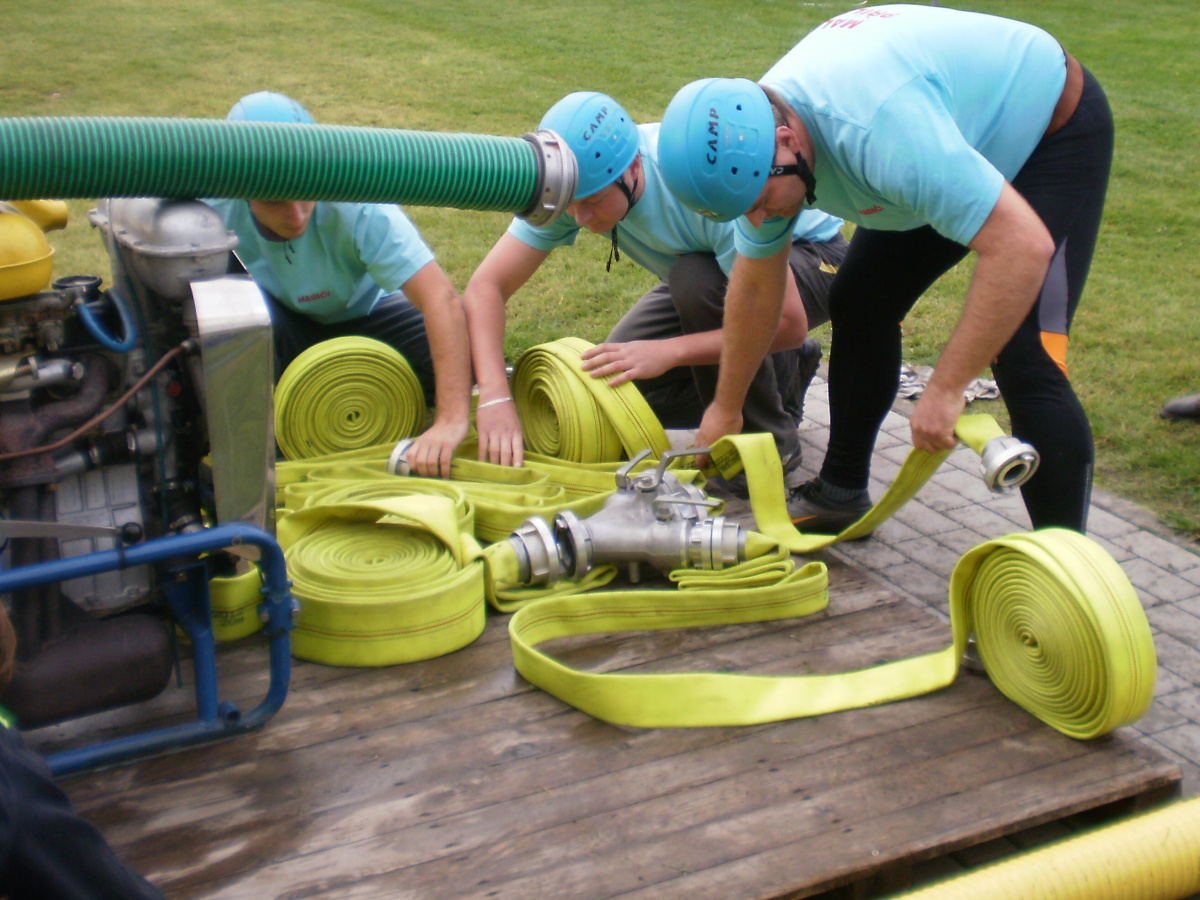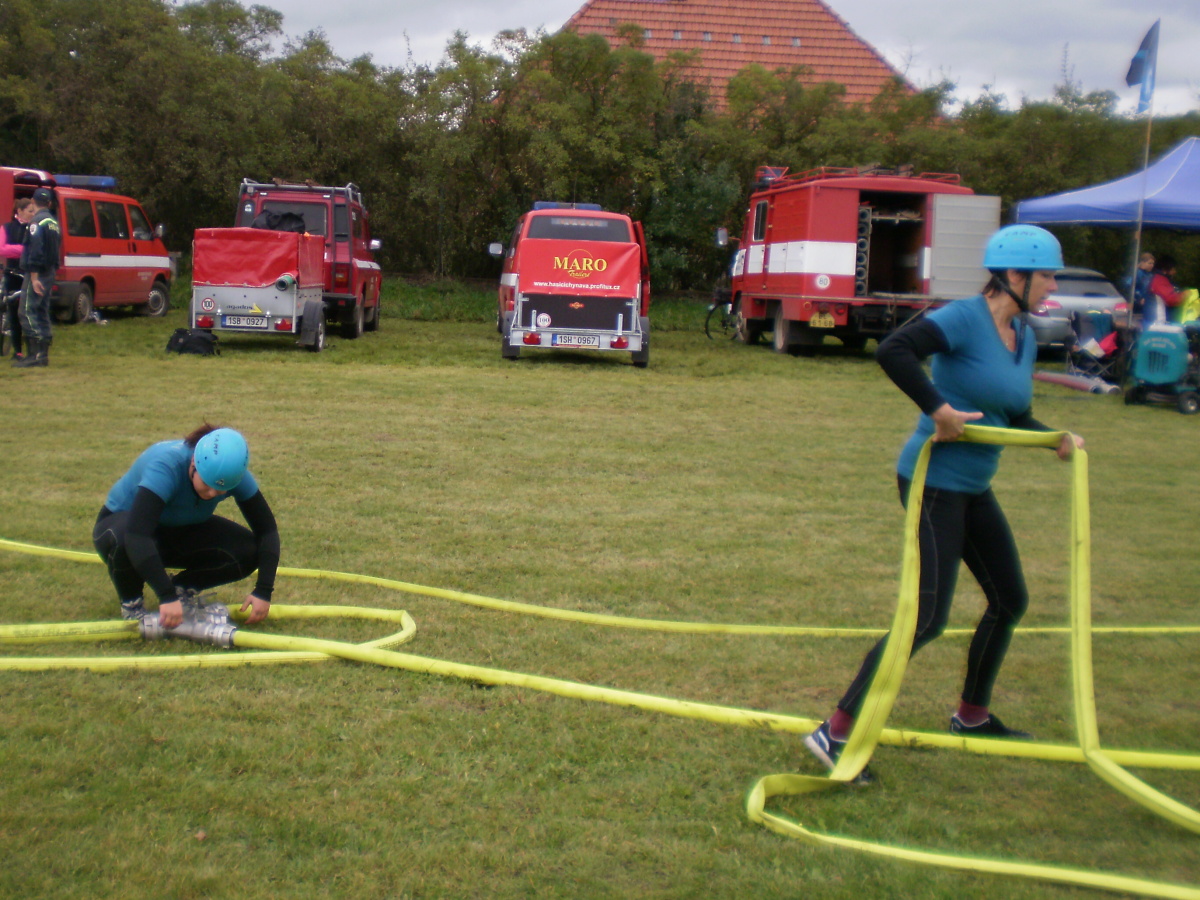 Následně, po odstranění překážek, odstartovaly požární útoky – s připojeným přetlakovým ventilem, muži na 3B hadice, ženy na 2B. Pro malou účast sborů bylo ale celkem rychle odběháno.