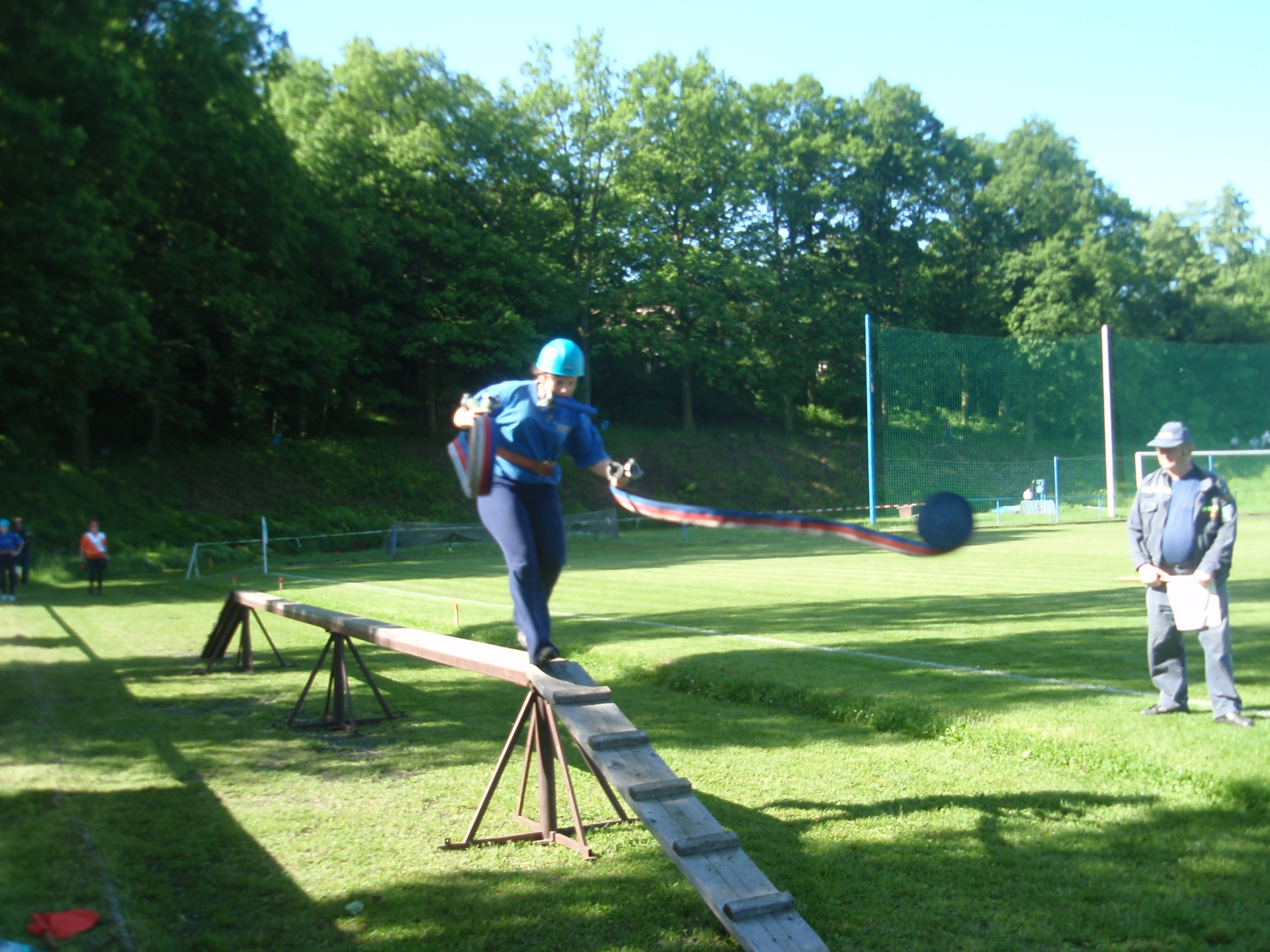Na prvním úseku - okno - běžela Irena Malá, druhý úsek - příčné břevno - běžela Andrea Štětková, třetí úsek - kladina + spojování hadic Lucka Hřebíková a poslední úsek - minimax - Vendula Malá.