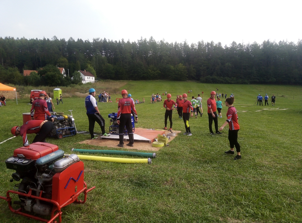 Ani jsme se nenadáli a už míříme na 16. ročník soutěže za našimi kamarády na Lhotku. Jako by to bylo včera, když jsme soutěžili na prvním ročníku ... Jelikož jsme se naposledy sešli na soutěži v červnu, museli jsme si před soutěží "střihnout" dva tréninky, abychom si znovu alespoň trochu porozumněli s hadicemi. To se povedlo, když jsme ze 7 tréninkových pokusů dokončili jeden. Plni optimismu jsme tedy už ani nemohli dospat. Holky na tom byly o něco lépe, ty se na tréninku nikdy nesešly kompletní. S odhodláním jsme tedy vyrazili. Po zdlouhavé, úmorné cestě jsme na místě a na louce obsazujeme ten největší vojenský stan, který do rána už neopustíme. Po nástupu nás čeká první disciplína, a sice štafeta.