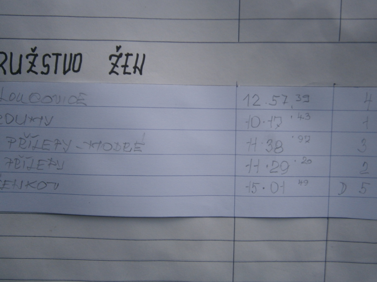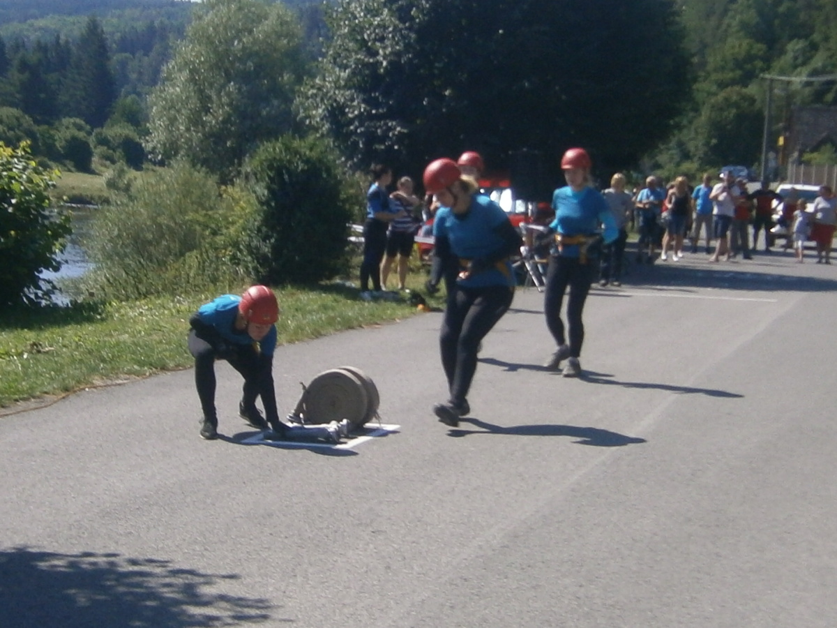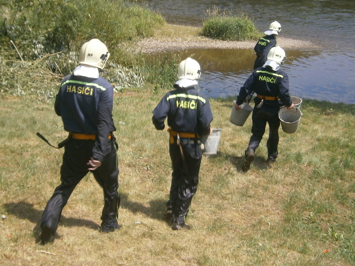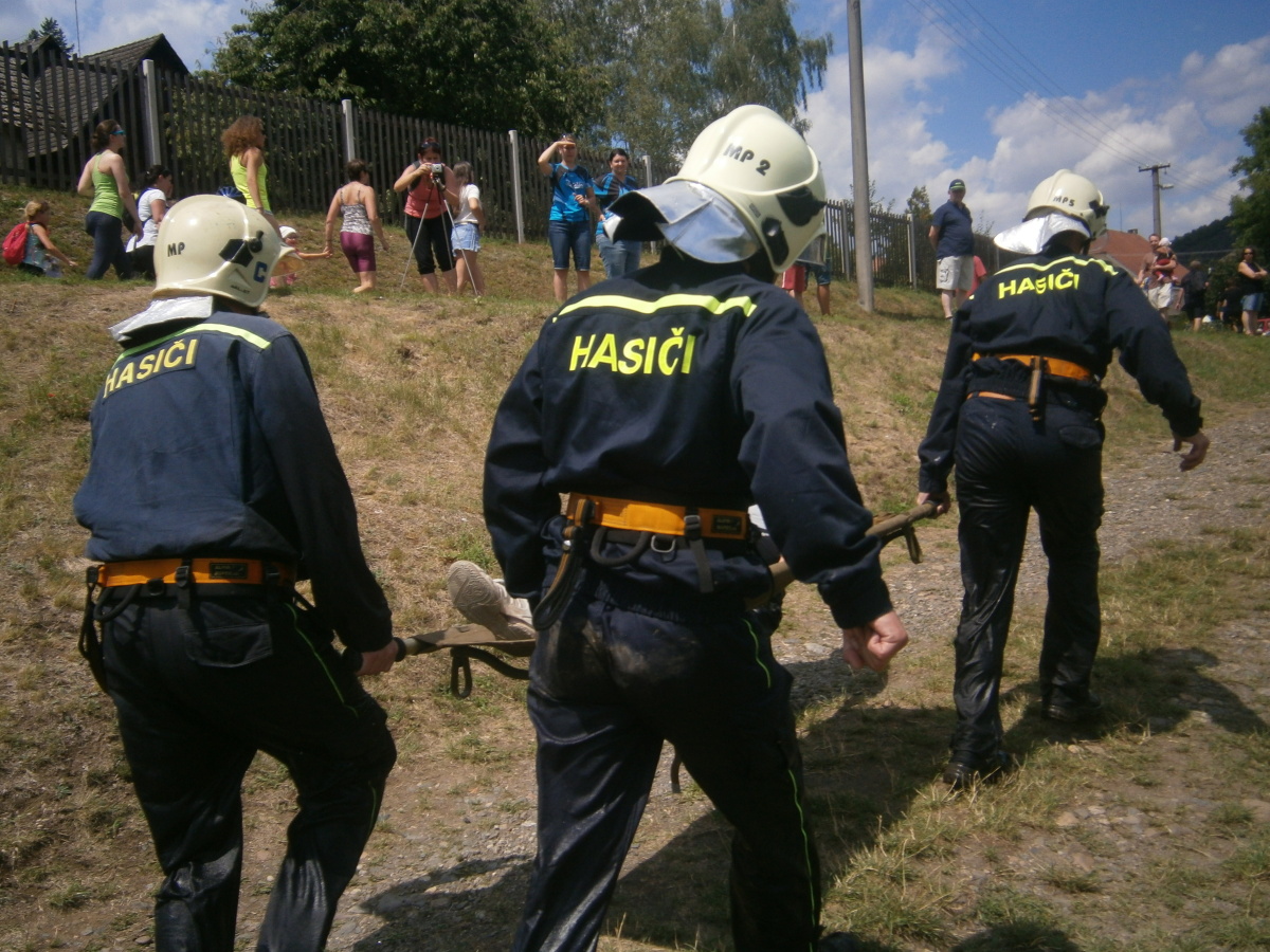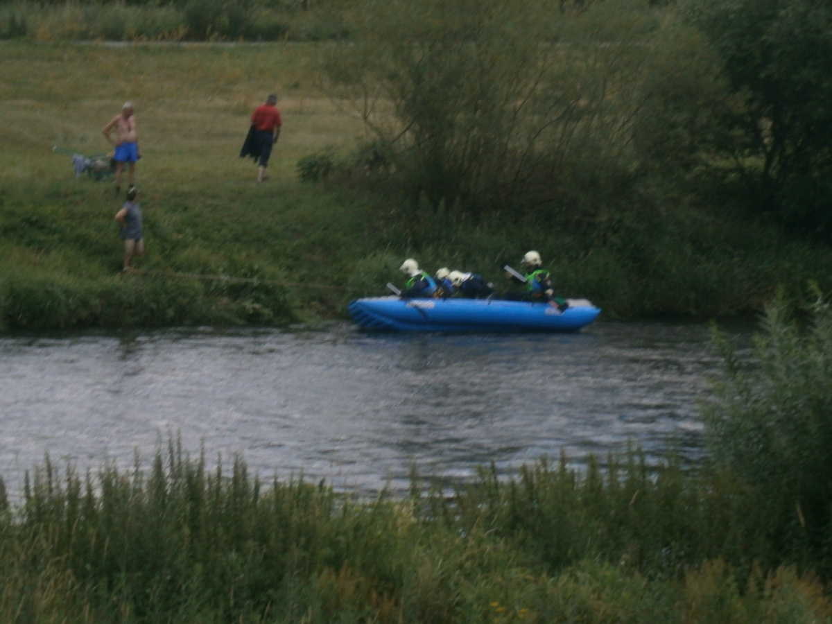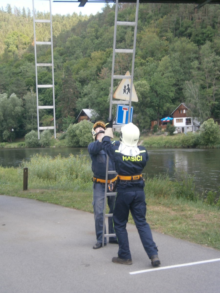 První z našeho sboru nastoupily na start ženy. Slanění z mostu proběhlo dobře, avšak s menším zdržením u Kátina uzlu. Při naloďování do raftu Míša uklouzla a sjela přímo pod něj do vody, koukala jí jen helma. Potloukla se o kameny, ale závod zkušeně dokončila. Jízda na raftu se celkem podařila. Samozřejmě nebyla podle původních představ a domluv, ale nevadí, hlavně, že byl naložen barel. U zdravovědy nebylo co vytknout. Kýble už byly opravdu dno sil, přesto je holky zvládly a za obrovské podpory fanoušků doběhly do cíle. Výsledkem bylo 2. místo za vítězkami z Broum. Kluci nastupovali na start jako poslední družstvo. Vteřiny, které ztratili při slaňování, dokázali nahnat rychlou jízdou na raftu a s přehledem naložili barel. A pak, někde mezi broděním a nošením kýblů, ztratili hodně času. Neudělali nic špatně, přesto nebyli z nejrychlejších. Možná zpomalili, možná docházeli poslední síly… Z pohledu diváka ze břehu se to radí. Jen ten, kdo tuto soutěž sám běžel, tak ví…