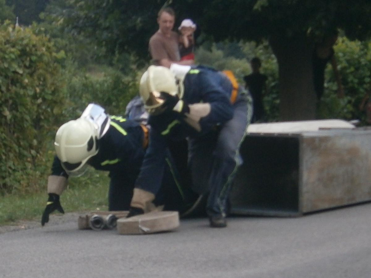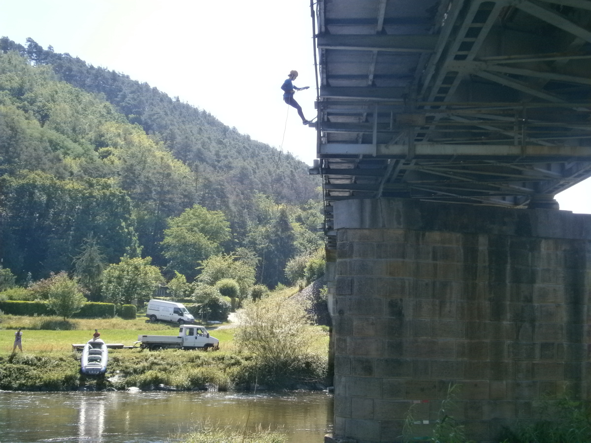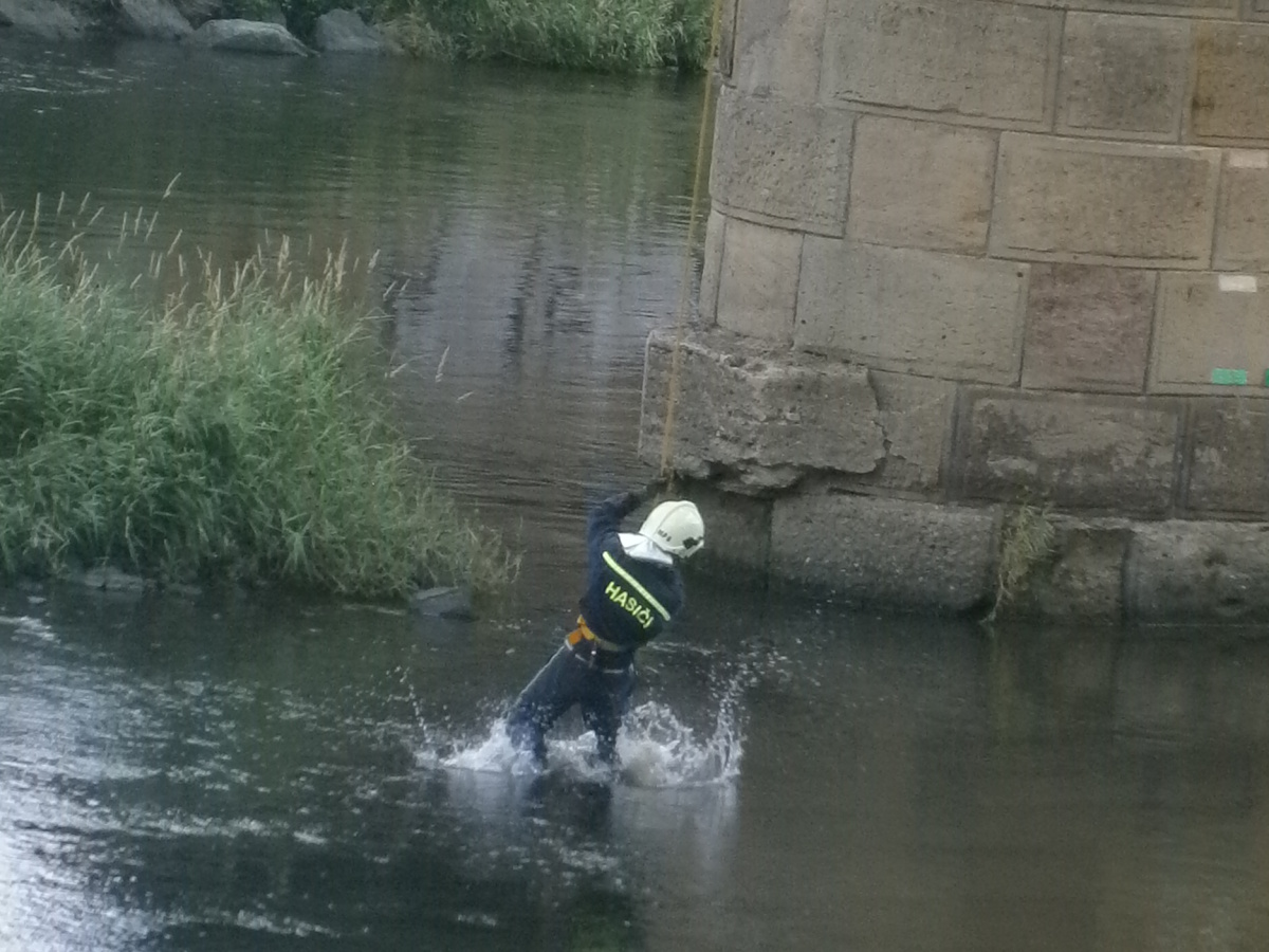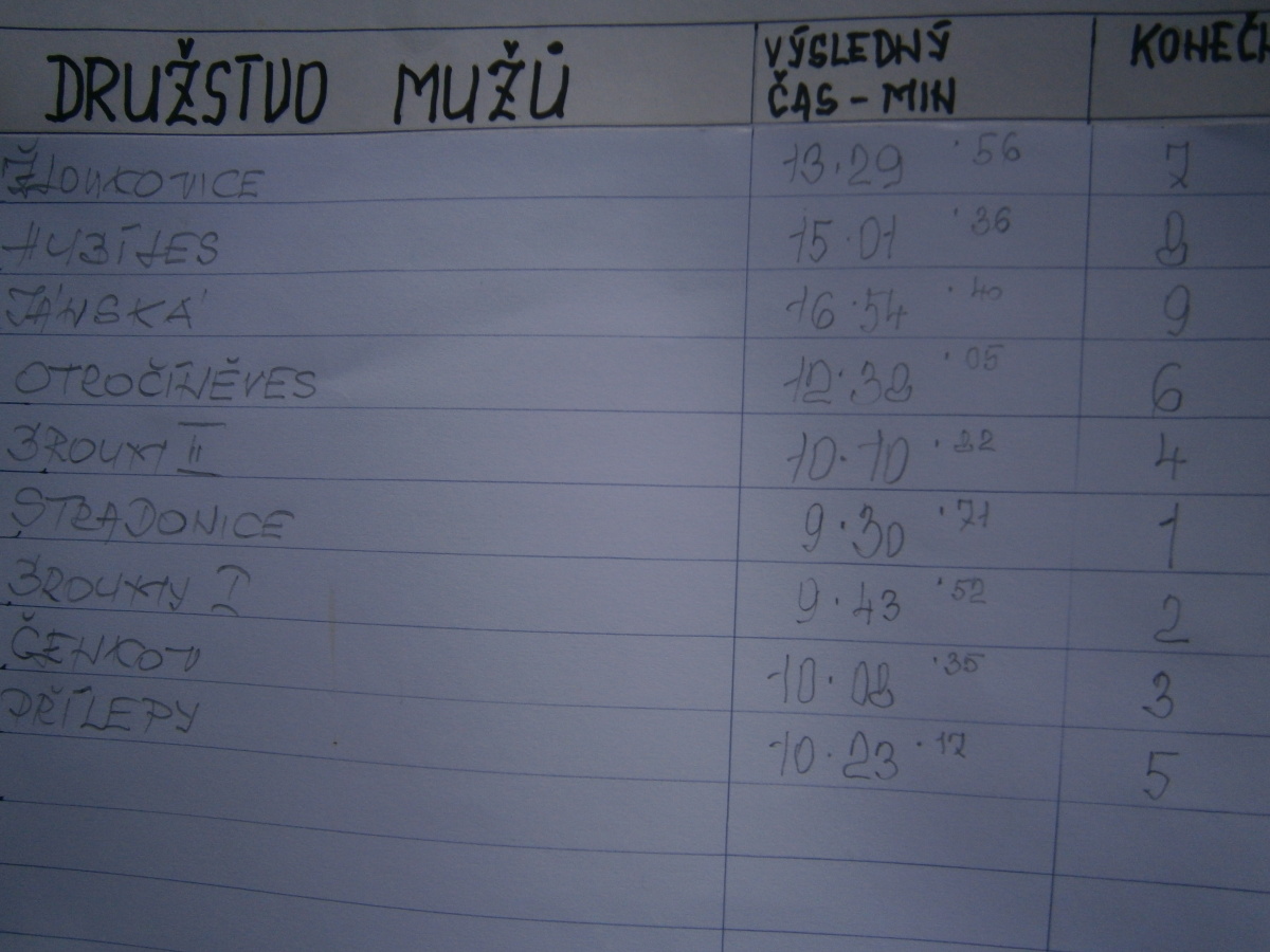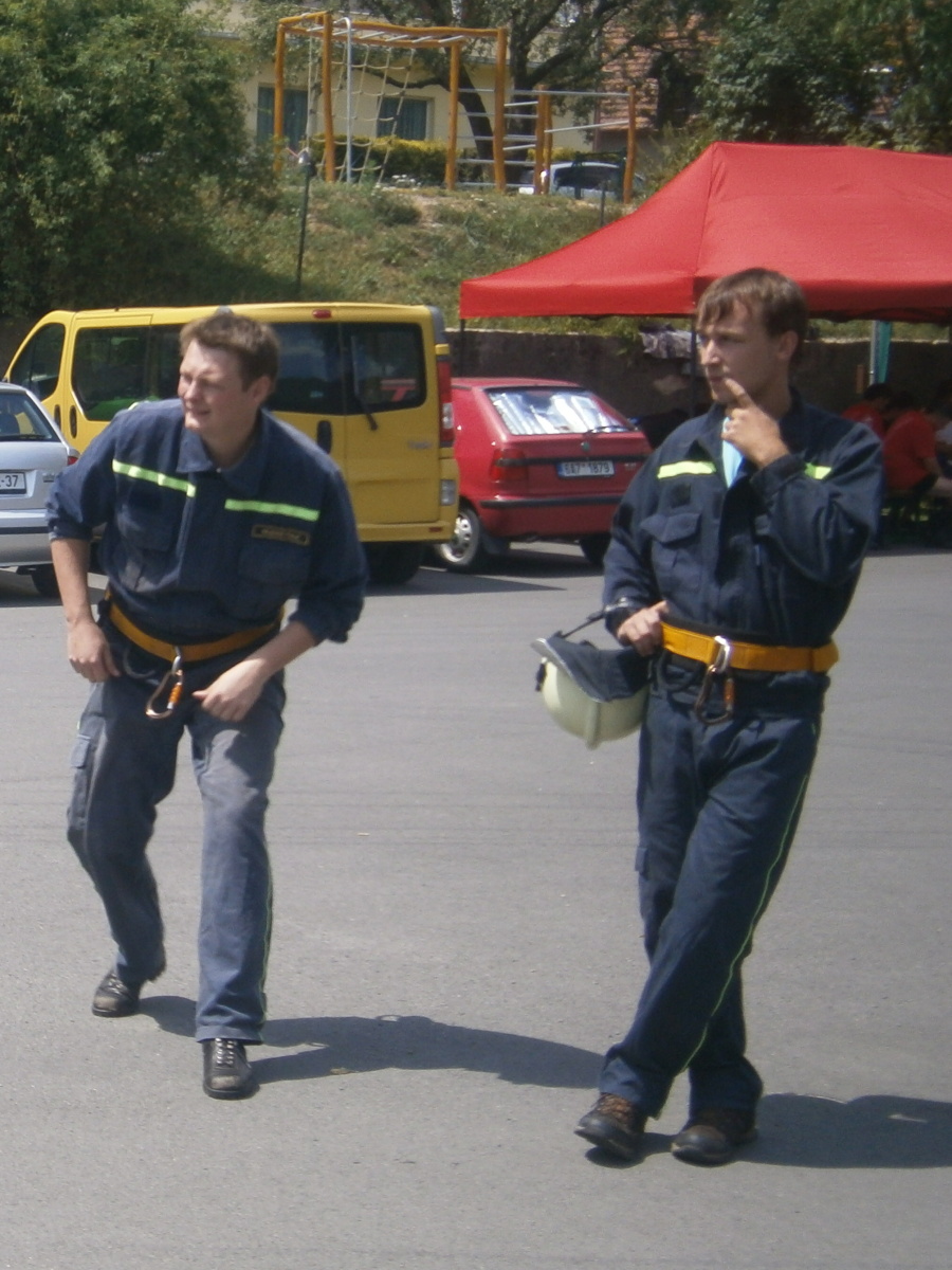 První z našeho sboru nastoupily na start ženy. Slanění z mostu proběhlo dobře, avšak s menším zdržením u Kátina uzlu. Při naloďování do raftu Míša uklouzla a sjela přímo pod něj do vody, koukala jí jen helma. Potloukla se o kameny, ale závod zkušeně dokončila. Jízda na raftu se celkem podařila. Samozřejmě nebyla podle původních představ a domluv, ale nevadí, hlavně, že byl naložen barel. U zdravovědy nebylo co vytknout. Kýble už byly opravdu dno sil, přesto je holky zvládly a za obrovské podpory fanoušků doběhly do cíle. Výsledkem bylo 2. místo za vítězkami z Broum. Kluci nastupovali na start jako poslední družstvo. Vteřiny, které ztratili při slaňování, dokázali nahnat rychlou jízdou na raftu a s přehledem naložili barel. A pak, někde mezi broděním a nošením kýblů, ztratili hodně času. Neudělali nic špatně, přesto nebyli z nejrychlejších. Možná zpomalili, možná docházeli poslední síly… Z pohledu diváka ze břehu se to radí. Jen ten, kdo tuto soutěž sám běžel, tak ví…