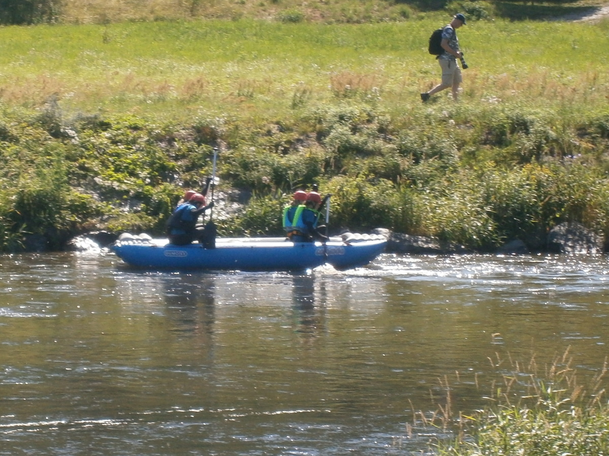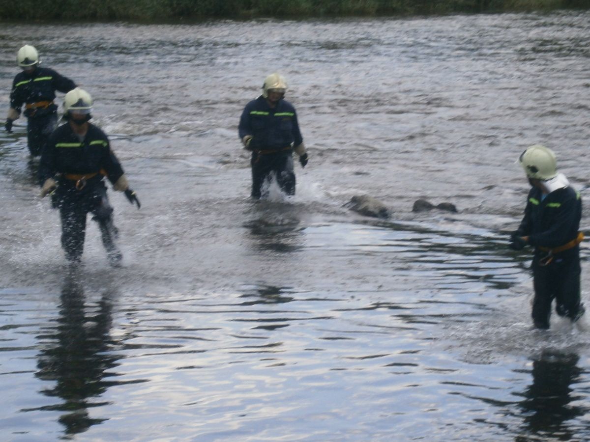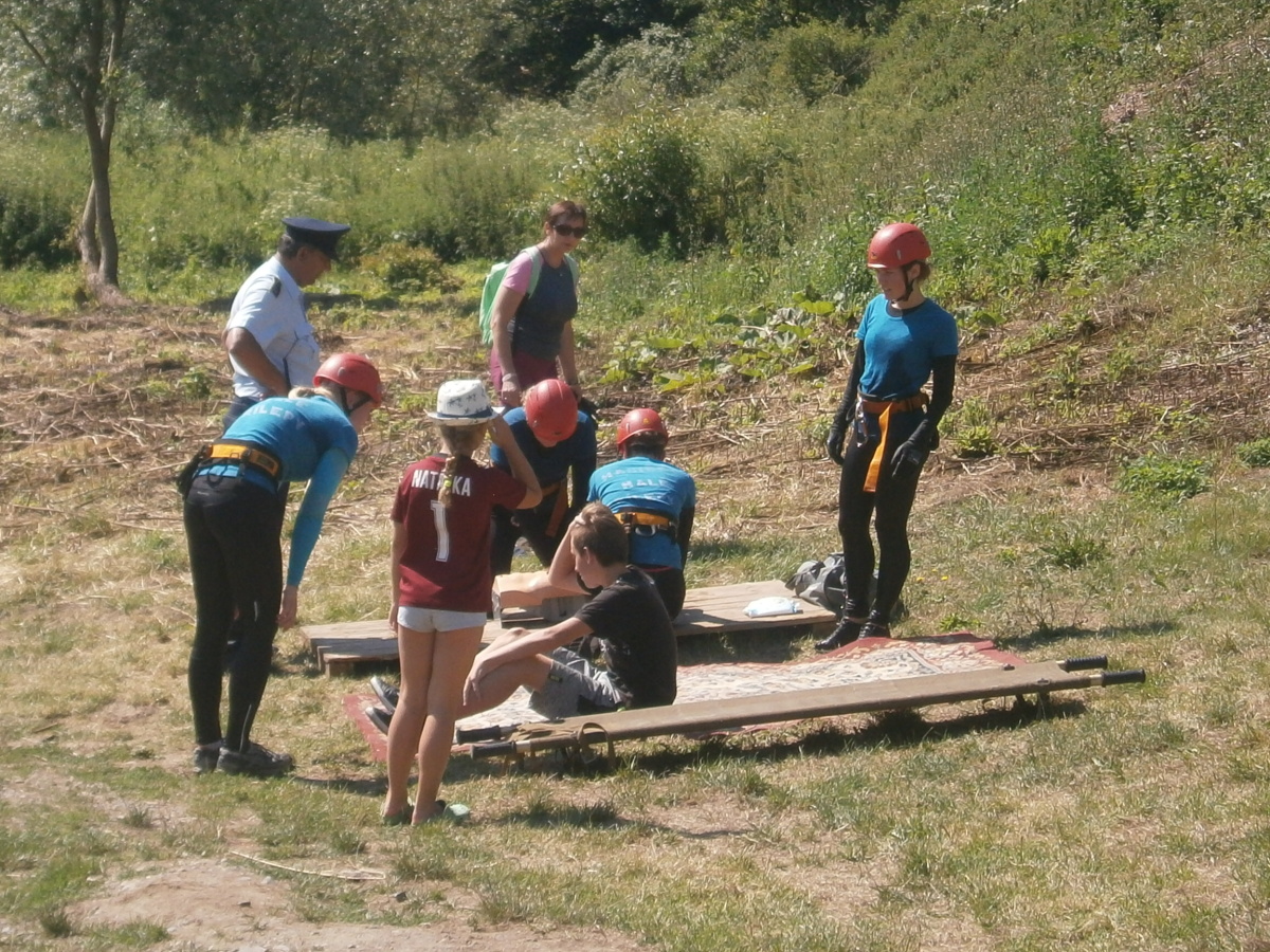 Panovalo letní slunečné počasí. Soutěžící museli po slanění brodit na druhý břeh (pohled ze silnice), kde všichni museli povinně obléci vesty, a poté až stáhnout raft. Dále po vyzvednutí plného barelu se na tomto břehu i přistávalo a opět se muselo brodit na druhý břeh, kde se prováděla simulovaná masáž srdce a transport zraněného. Ženy přenášely nosítka prázdná. Poslední zastávkou, kde už soutěžící obvykle melou z posledních sil, byly kýble. Muži museli naplnit celý barel, ženy přinést 4 kýble vody. Každé družstvo se ještě před startem podrobuje testu na alkohol.