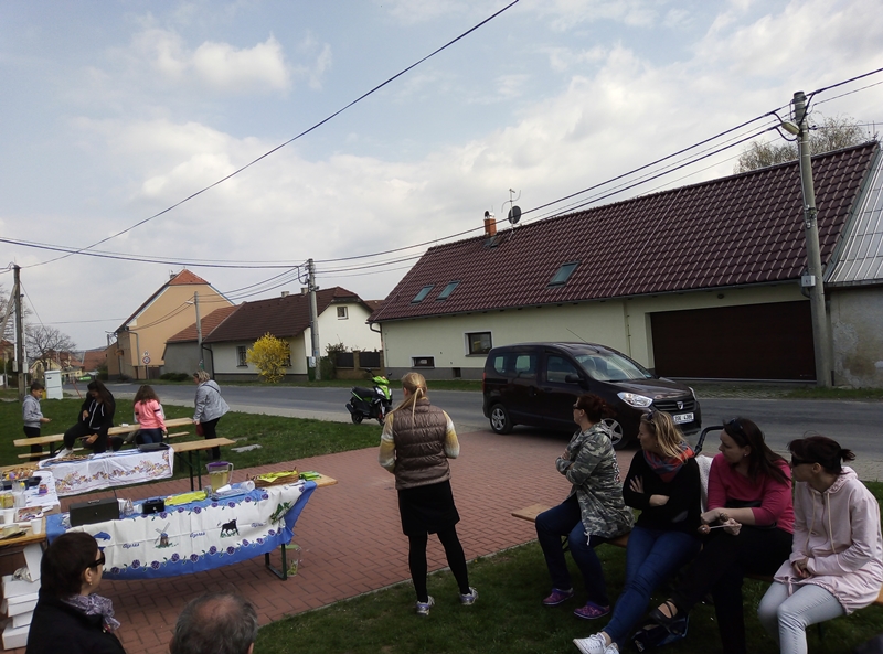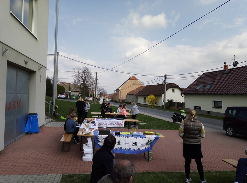 Jistě si každý vzpomene na svá dětská léta, když se snažil stát se velkým obchodníkem a pro své první koruny prodával u cesty limonádu, pomalované kamínky a jiné domácí výrobky. I v našich nejmenších dlí obchodnický duch. Sami přišli k nám, ať se my maminky domluvíme, že budou prodávát své výrobky na Velikonoce. Co jsme mohli dělat ... jedině je podpořit. A k dobrému nápadu se vždy přidají další nadšenci. Nejmenší z mladých hasičů vyrobili velikonoční ozdoby a voňavé perníčky. Starší děti se zapojili a vytvořili krásná zdobená vajíčka k zapíchnutí do květináčů. A naše šikovná děvčata, Adelka s Deniskou, připravili k osvěžení limonádu a výborné buchtičky. Hasiči dětem postavili zázemí a vyhlásili akci rozhlasem. A tak jsme v sobotu 6. dubna odpoledne uspořádali za krásného počasí první Dětský velikonoční jarmark. Akce měla neuvěřitelný úspěch. Děti v některých chvílích doslova čelili návalu nákupuchtivých maminek, tatínků, babiček,dědečků, strejčků a tetiček. I náhodní turisté byli místním davem doslova donuceni zastavit se u pultu a něco zakoupit. Nálada byla výborná, někteří si pochutnávali na moučnících, jiní zavzpomínali na svá dětská léta a první obchodní pokusy. Zkrátka všichni si to užili. Touto cestou chceme my maminky (Veronika Jedličková a Lenka Bartošová) všem poděkovat za nádherný zážitek, protože díky Vám budou naše děti celý život vzpomínat na své první vydělané koruny.