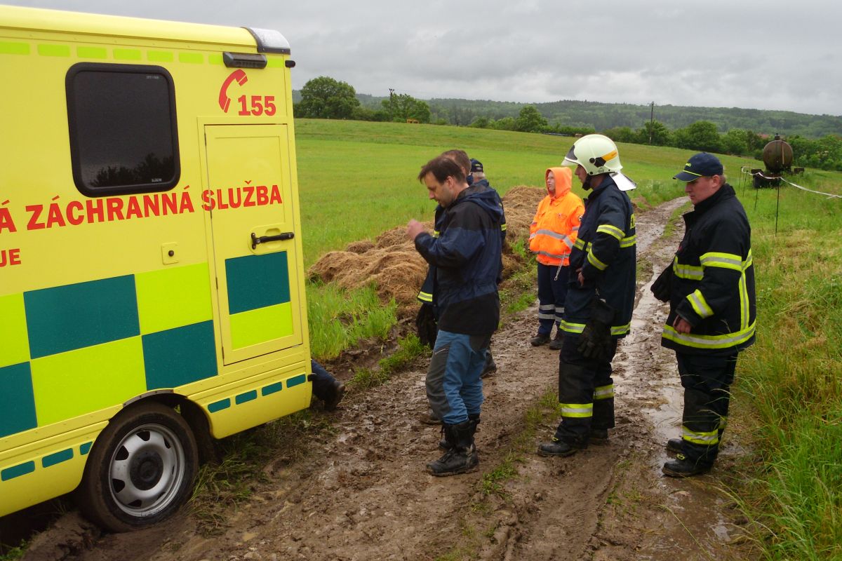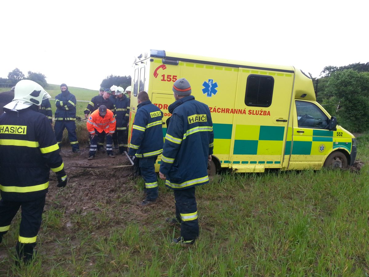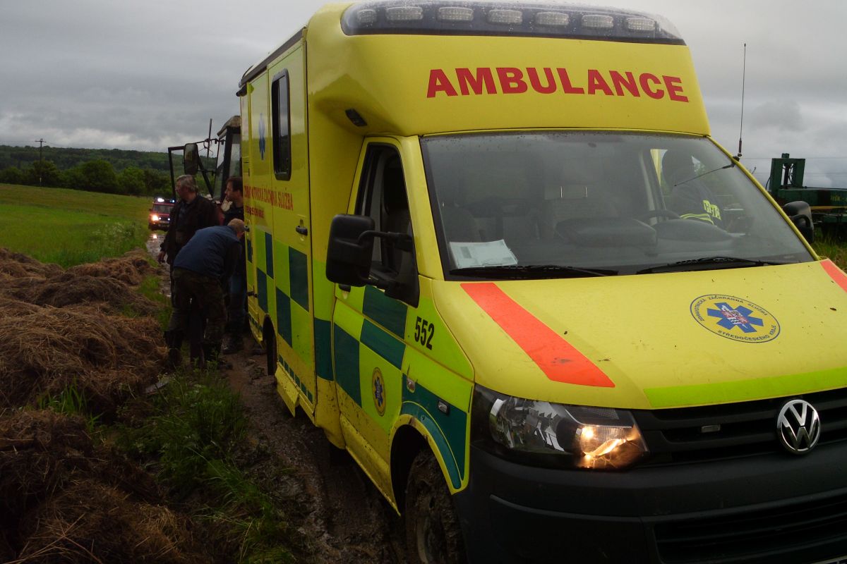 Vyproštění sanitky z pole u švestek - 2.6.2013