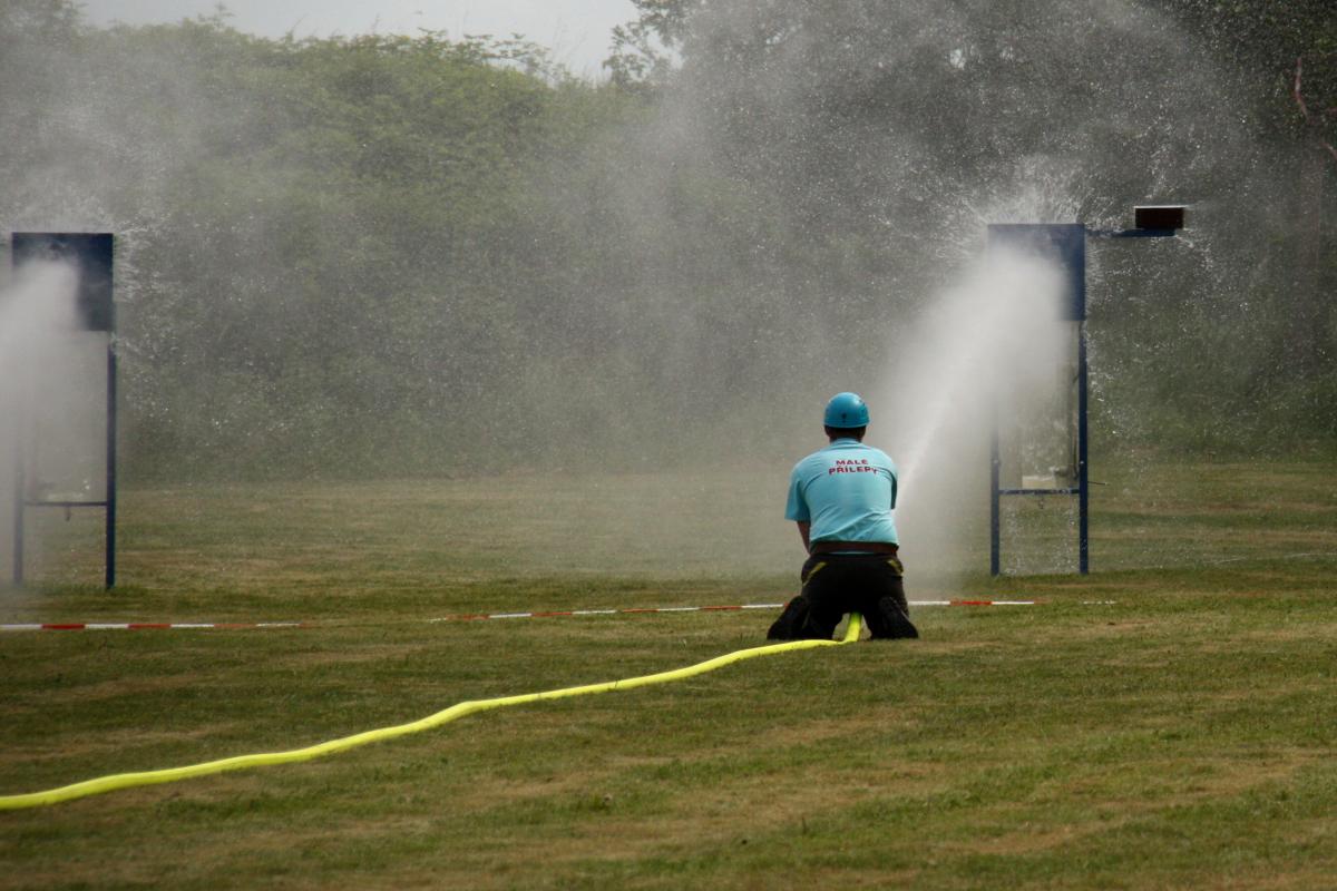 Kluci skvěle nabrali, ale… opět se vloudil zádrhel. Béčkař se zdržel na platě, a jak už to tak tou posloupností chodí, nedotáhl ani rozdělovač a ani proudy. Terče se podařilo nastříkat v čase 38,21 s a tím bylo 3. místo uhájeno.