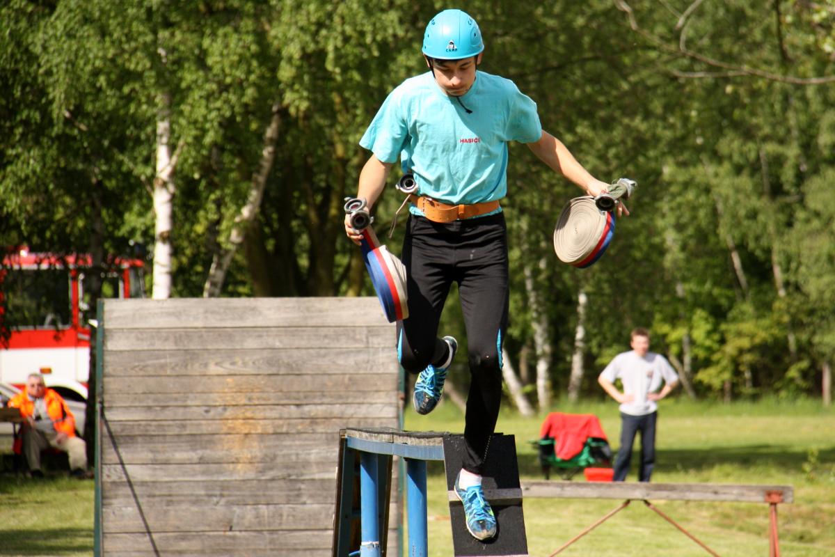První částí soutěže byl běh na 100 metrů s překážkami (bariéra, kladina, rozdělovač), kdy se počítají tři nejlepší časy.