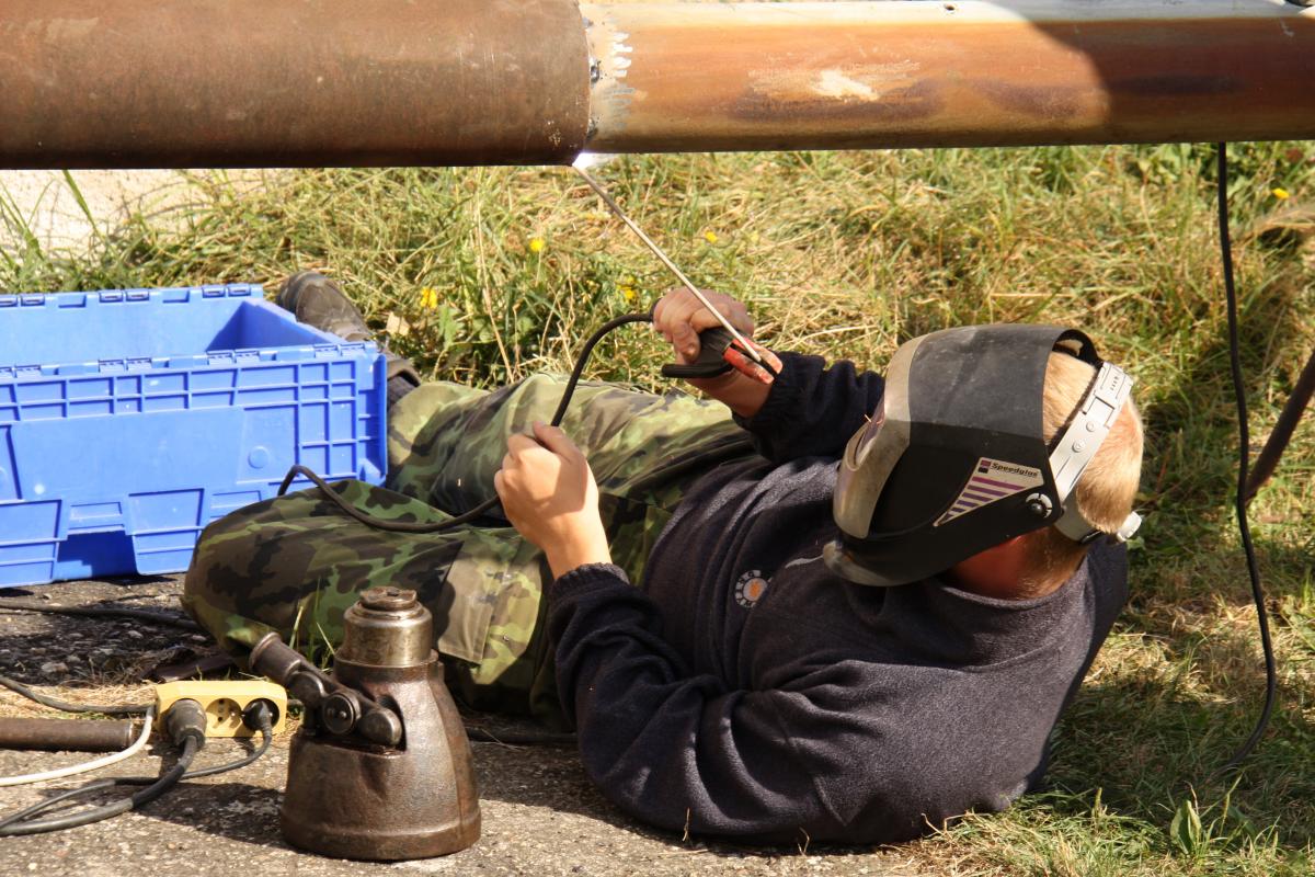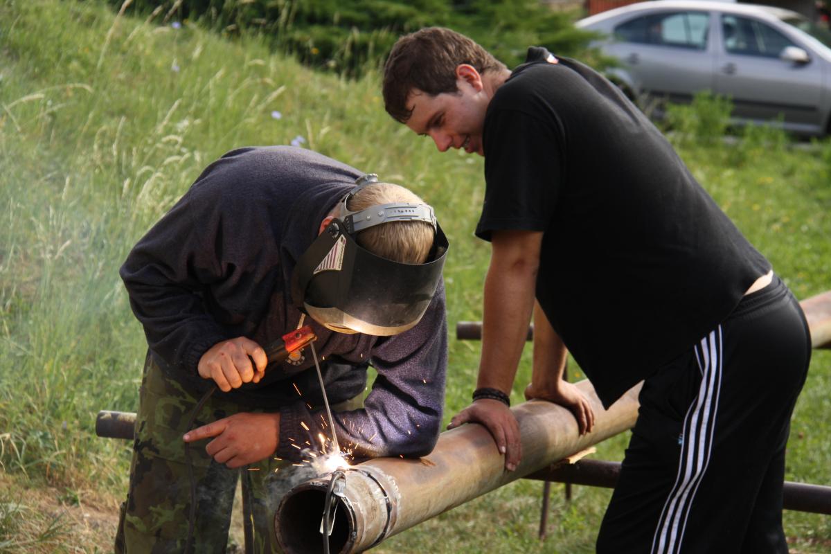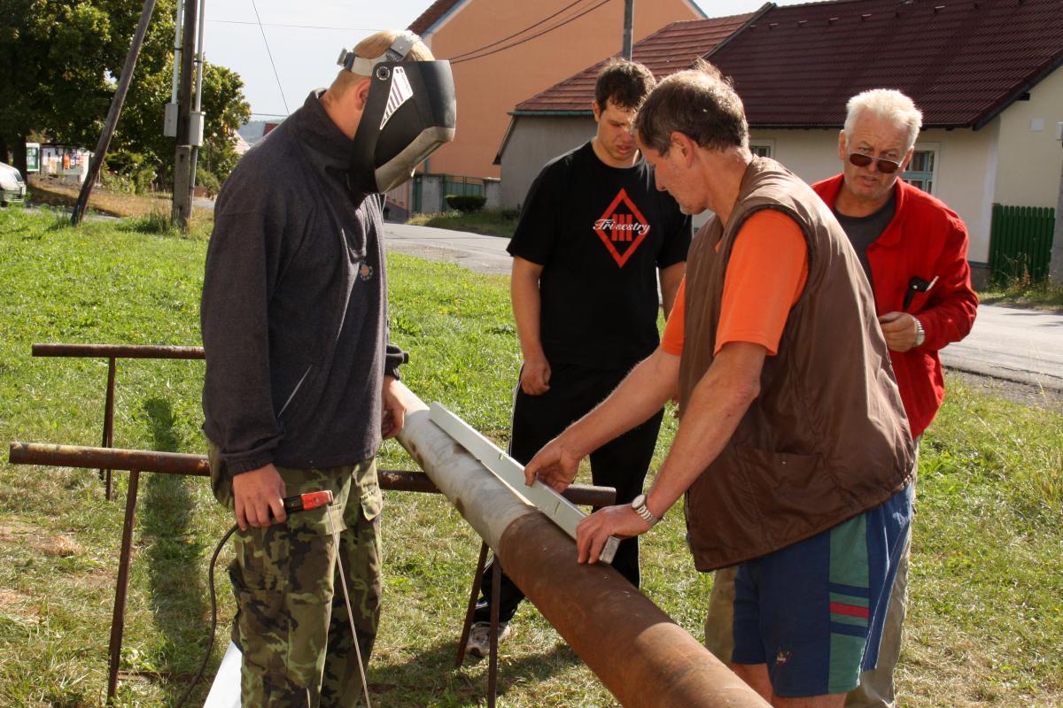 Brigáda na předělání sloupu VO na sušák hadic 29.8.2009