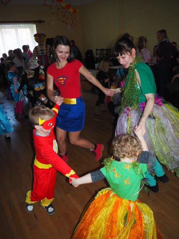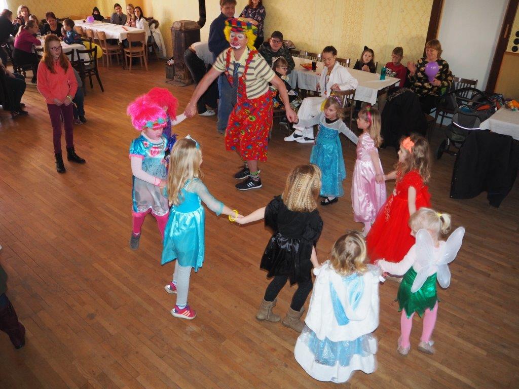 Protože se chtějí bavit i děti, upořádal pro ně sbor v neděli dětský maškarní karneval. Někteří z nás toho ani moc nenaspali a šlo se připravovat na sál vše potřebné. Úderem druhé hodiny odpolední proudily do hostince „U Vořechů“ davy rodičů, prarodičů, strýčků a tet. Každý chtěl doprovodit své dítko a pořídit nějaké veselé fotky. Nutno dodat, že rozmanitými kostýmy se to jen hemžilo. Kde jinde bychom mohli potkat v jednom kole víly, piráty, zvířátka, princezny, indiány či komiksové hrdiny. Nechyběl ani klaun Pohodička, který celý karneval moderoval a vymýšlel různé soutěže. Odpoledne se dětem líbilo, což bylo poznat z jejich smíchu, radosti a soutěžního zápalu. Všechny děti proto dostaly zaslouženou sladkou odměnu.