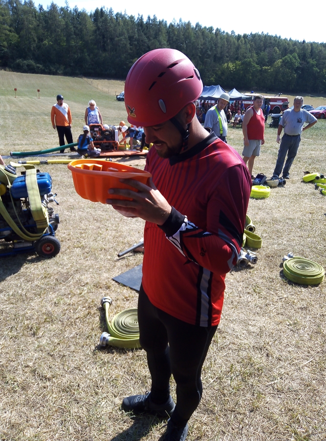 Po štafetách následoval první požární útok, který se běžel na 2B hadice a bez přetlakového ventilu. Kluci se hned ujali vedoucího místa v tabulce a rozhodně se ho nehodlali vzdát. Při druhém útoku místo Jirky na levý proud nastoupil Pavel, na post košíkáře se postavil Jarda a Matěj byl přesunut na béčka. Ještě před začátkem druhého kola se Matěj značně nervoval z této pozice, měl ji běžet v mužském družstvě úplně poprvé. Jeho obavy byly naprosto zbytečné, klukům se podařilo svůj čas z prvního kola dokonce vylepšit, a to na krásných 18s. Jejich vítězství jim už nikdo nedokázal vzít, a tak si odnášeli putovní pohár, perníkové medaile a jako bonus navíc každý člen jejich družstva obdržel na slunci vyhřívané bílé víno.