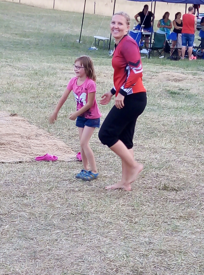 2. a 3. úsek – muži měli přemístit pneumatiku od traktoru a ženy přeskočit příčné břevno