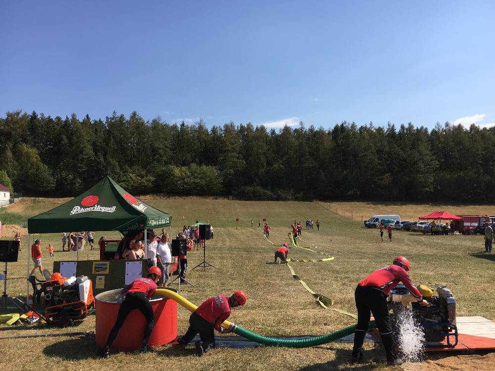 Soutěž, skládající se z netradiční štafety a požárního útoku, začínala ve dvě hodiny odpoledne. Na nástupu pořadatelé věnovali pár slov historickému výročí, které následovalo vyslechnutím české státní hymny. Přestože bylo ten den již od ranních hodin velké horko, z důvodu nízké účasti hasičských družstev (3 ženská družstva a 5 mužských) bylo rozhodnuto o konání dvou požárních útoků.