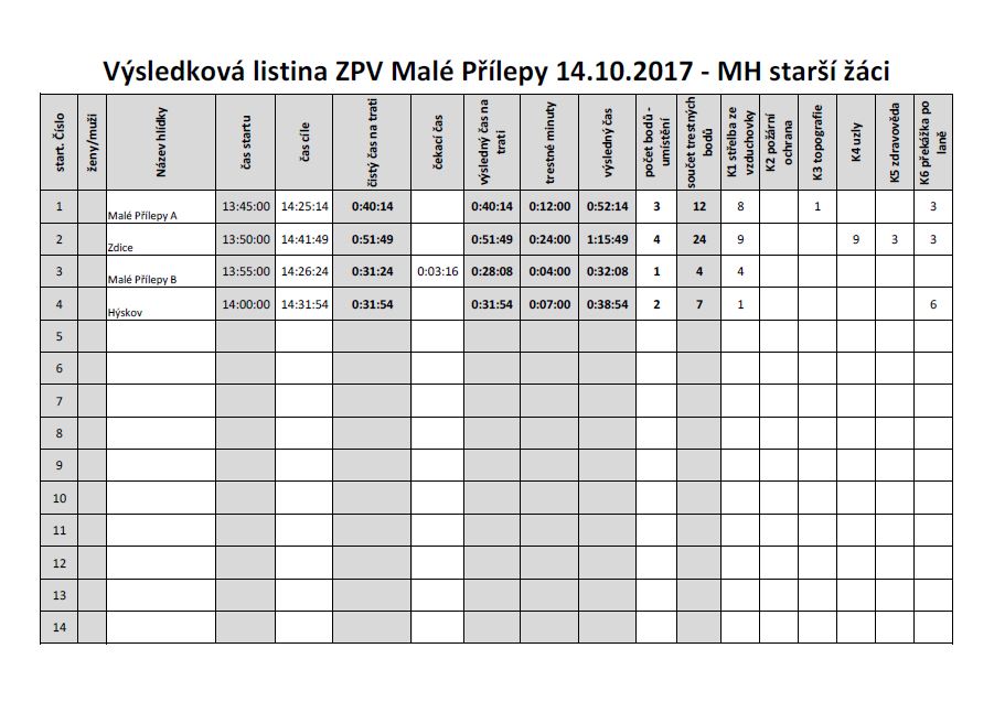 Závod požárnické všestrannosti Malé Přílepy – 14.10.2017