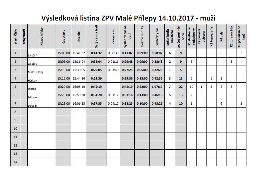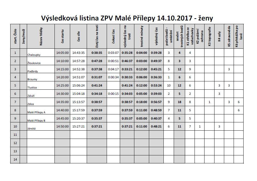 Jak výsledková listina ukazuje, všechna naše družstva nejvíce chybovala ve střelbě. Pro příště je nutné změnit barvu pozadí za špalíčky. Obojí splývalo dohromady.