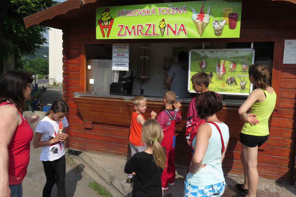 Ráno jsme v klidu posnídali, zbalili stany a zázemí a nakonec ještě Honza Blahovec otevřel pro děti u řeky zmrzlinu, tak jsme se s letošní soutěž rozloučili s porcí zmrzliny.