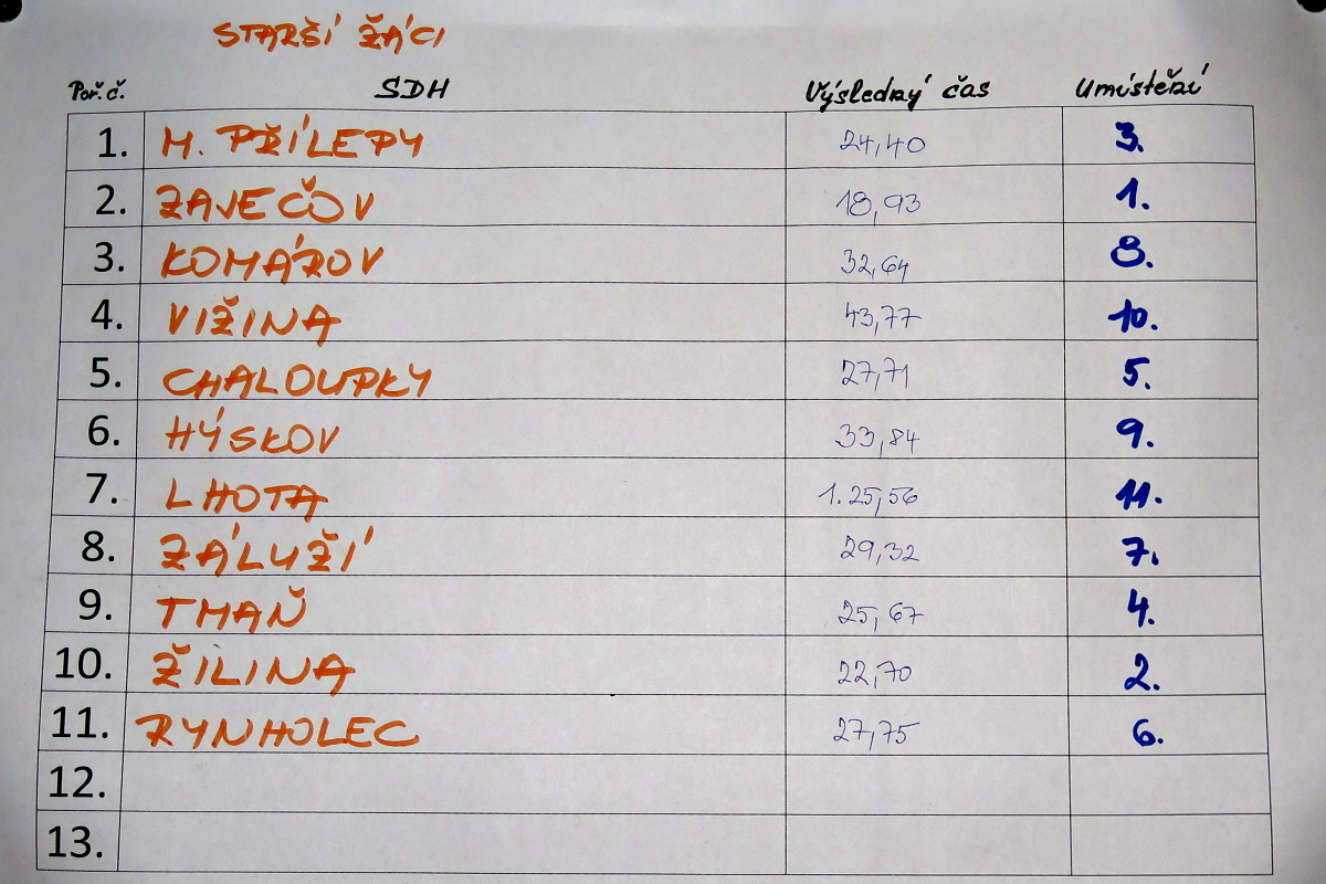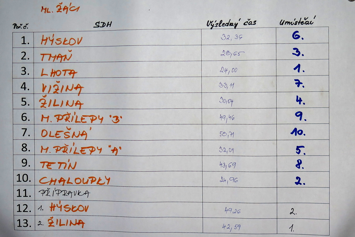 Nakonec jsme si vybojovali družstvo A místo páté s časem 32,01 a družstvo B místo deváté s časem 49,46.