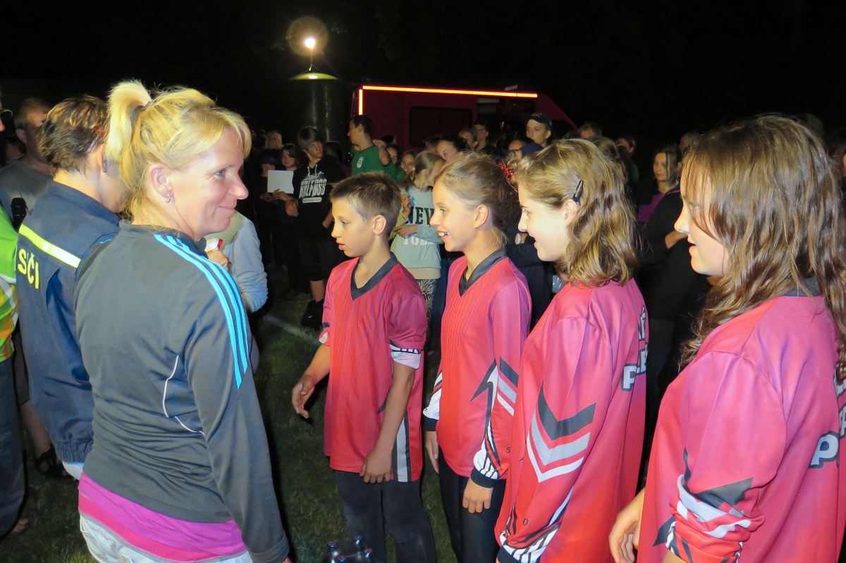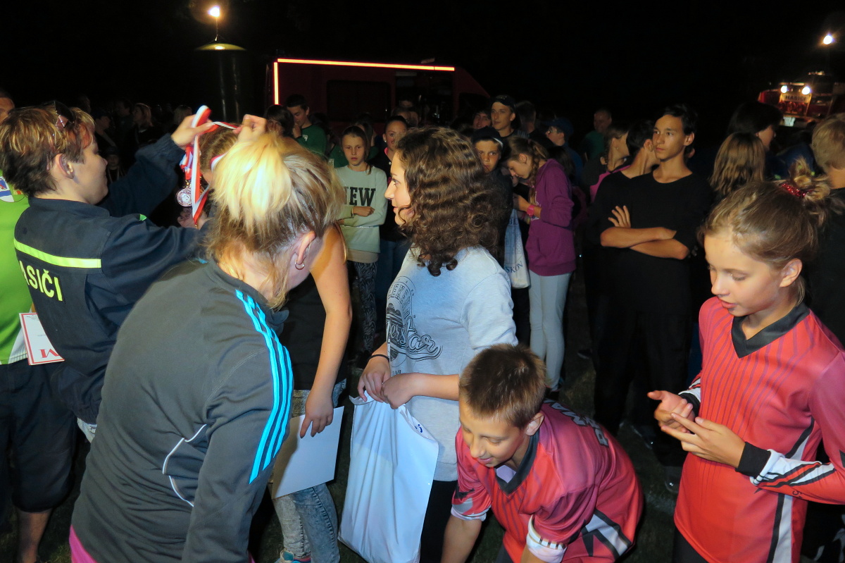Po vyhlášení začala soutěž starších družstev už konečně za tmy. Neomylně jsme si vylosovali jedničku. Na zadku všechno hezky klaplo a tak voda dohnala holky na proudu, kde se Julča Baštová chvilku prala s proudnicí a tak jsme pár vteřin ztatili a útok dokončili s časem 24,40, takže bylo jasné, že budeme do poslední chvíle čekat, kdo všechno nás přeskočí. Nakonec se ale podařilo jen dvěma družstvům udělat lepší čas a tak na nás vyzbylo hezké třetí místo.