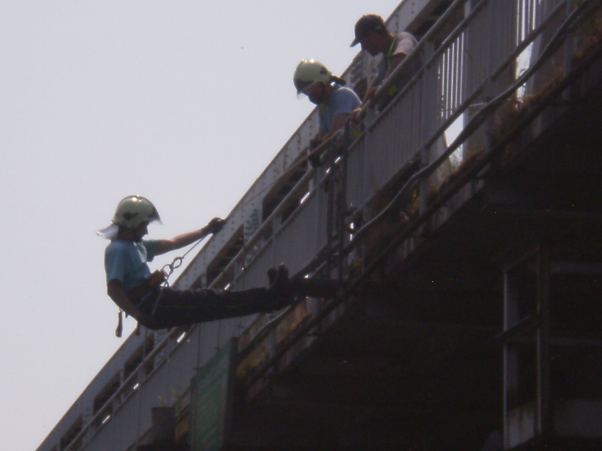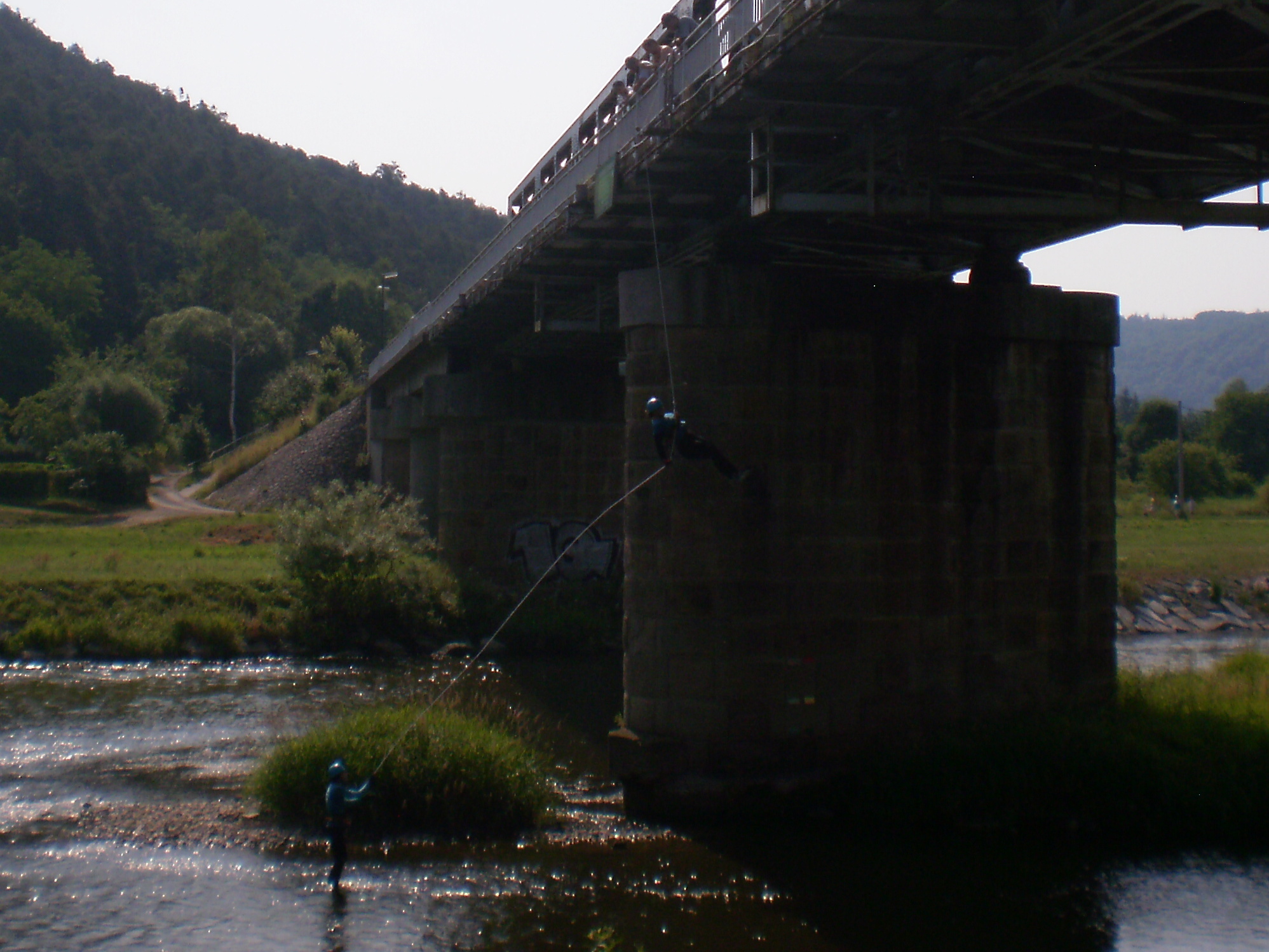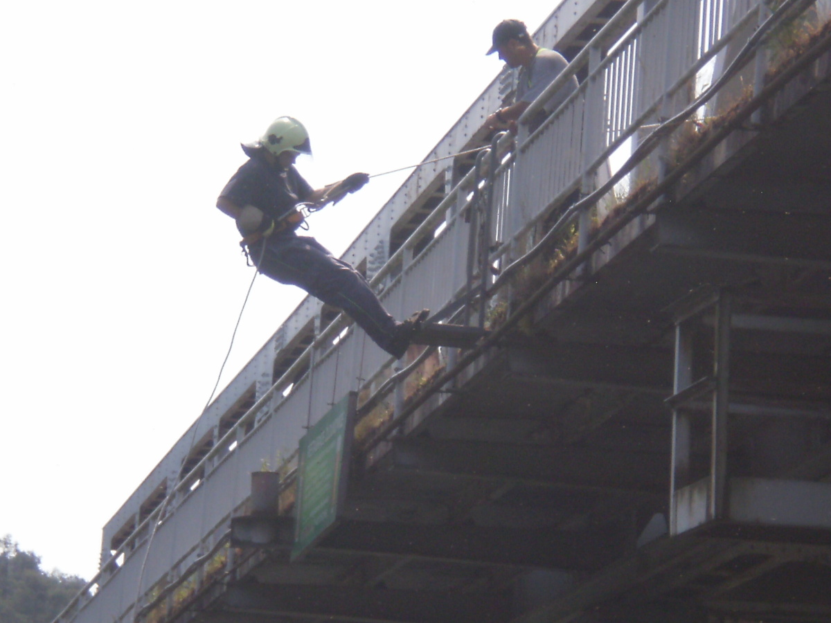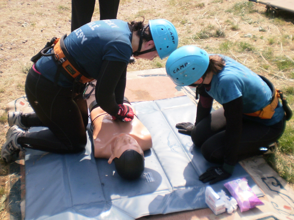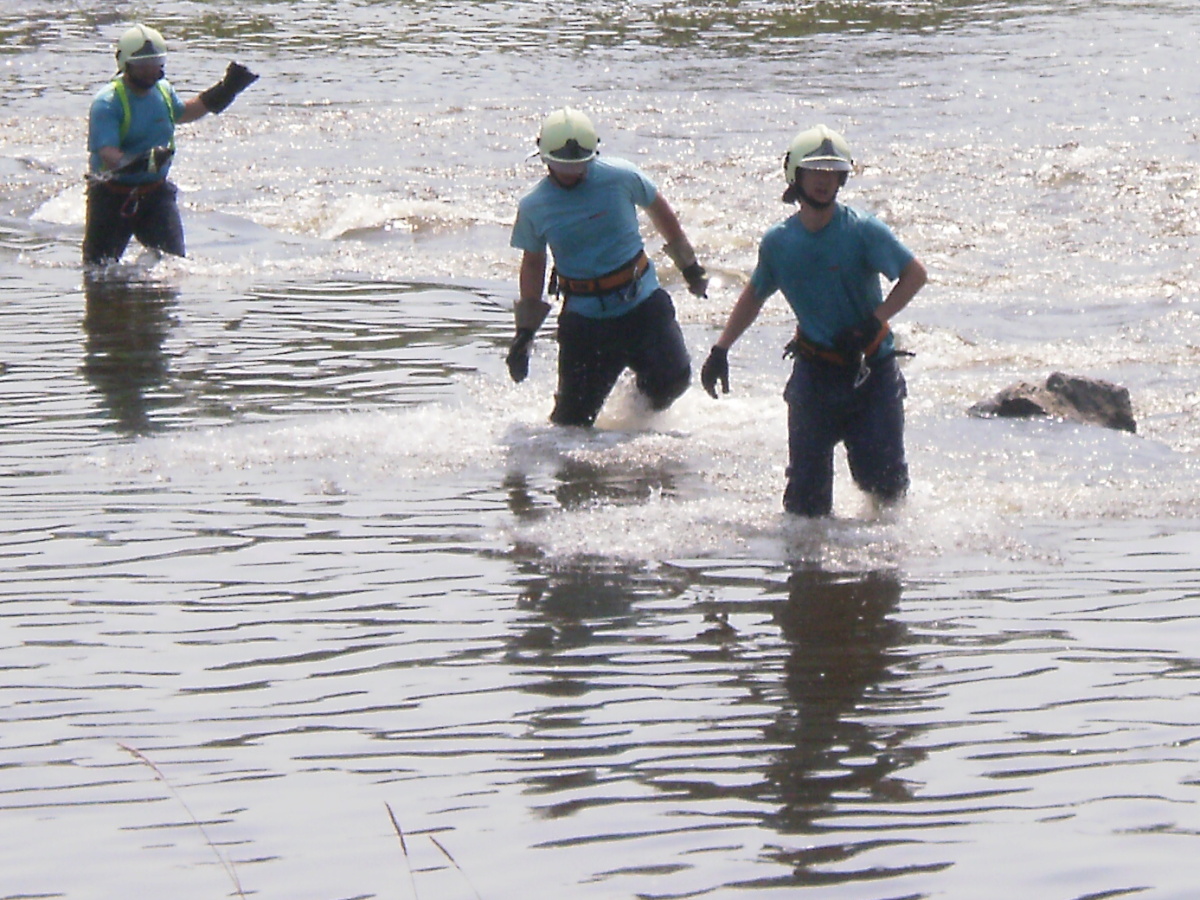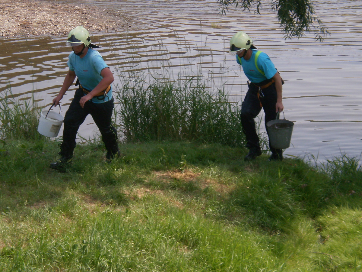 První z našeho sboru tedy nastoupily na start ženy. Slanění z mostu proběhlo velmi dobře a rychle, po přebrodění řeky na druhý břeh však došlo k menšímu zádrhelu. Do ruky se mi dostala nejmenší vesta, kterou jsem přes hrudník prostě nemohla zapnout, což při nalodění do člunu je povinnost. Míša proto musela svléknout svou vestu, abychom je mohly vyměnit. Díky této neplánované módní přehlídce jsme však ztratili min. drahocennou minutu. Jízda na raftu se nám celkem podařila, barel jsme vyzvedly a v pořádku přistály. Brodění na druhý břeh ale nebylo jednoduché, strhával nás proud, takže jsme několikrát upadly. Míša, která běžela jako úplně poslední, protože ještě vylévala barel, také spadla a vůbec se jí nedařilo zvednout. Štěstí, že se zachytla kamene, ze všech sil zabojovala a zvedla se, jinak by ji proud unášel až do Hýskova. Chvíli jsme se zdržely ještě u masáže srdce, kde Štěpka musela více zaklonit hlavu figuríny a opakovat dýchání. Doběh s nosítky do cíle už byl bez problémů. Výsledkem bylo 3. místo s časem 11:07:34 min.