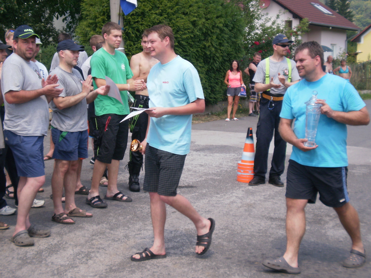 Děkujeme tímto hasičům ze Žloukovic za tuto netradiční, zajímavou a pěkně připravenou soutěž a zároveň i za lahve vody, které každému soutěžícímu podávaly v cíli žloukovické hasičky. Jak bylo řečeno na závěrečném nástupu, vítězství by si zasloužili všichni soutěžící, kteří se v tomto neskutečném horku soutěže zúčastnili.