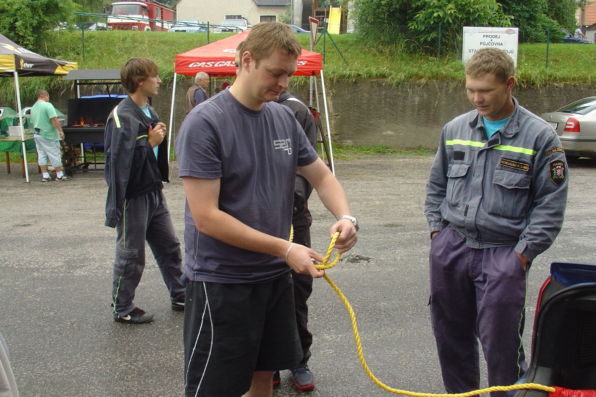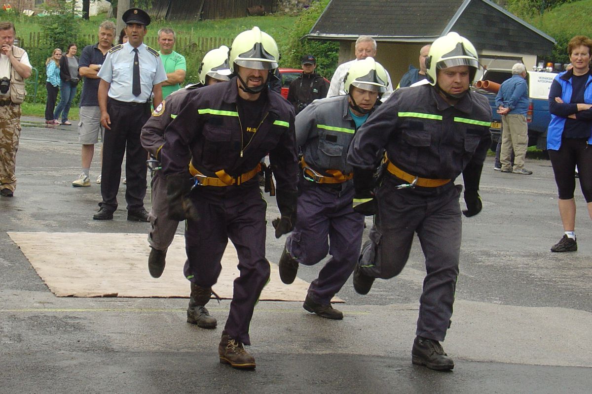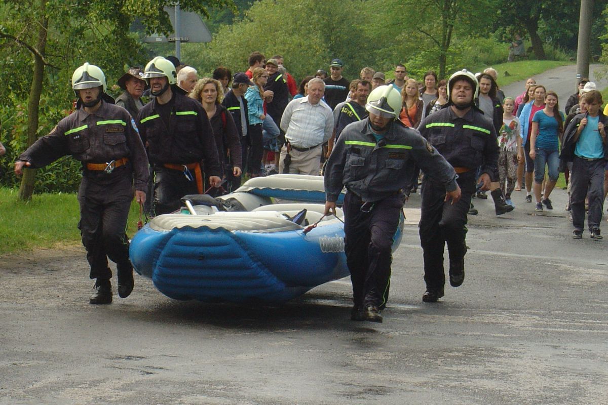 Celá soutěžní trasa je náročná na fyzické síly a čtyřčlenná družstva se musí porvat s několika úkoly. Po vyběhnutí přenést hadice a proudnice na určené místo prolezením dvou tunelů, zavěsit žebříky (ženy pokládají), slanit ze železničního mostu do řeky, jet na raftu, vyzvednout barel (symbol tonoucího), zdravověda (masáž srdce a stabilizovaná poloha), běh s raftem a nošení kbelíků s vodou.