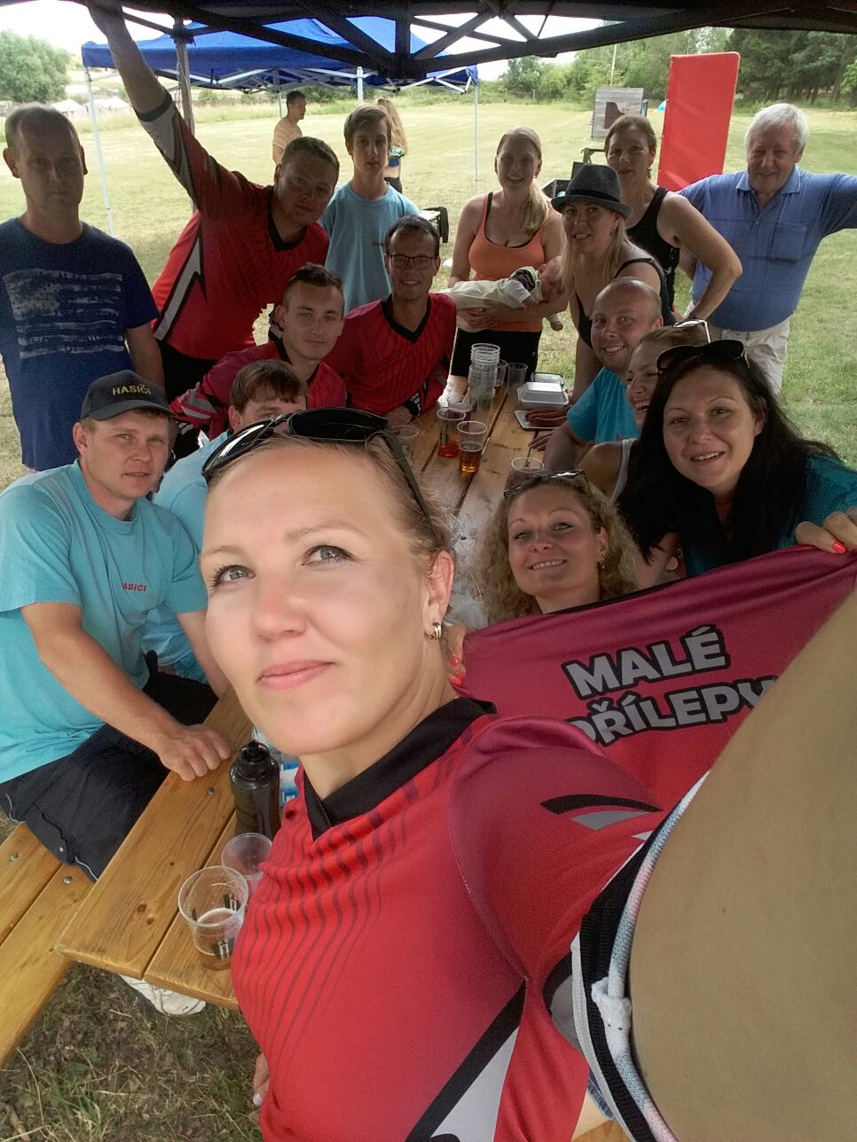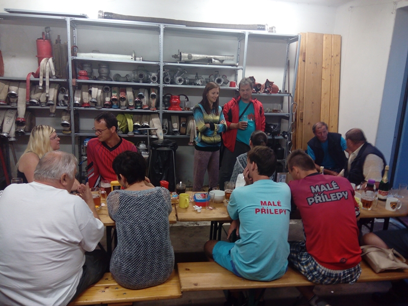 Pomyslnou tečku za touto soutěží jsme udělali posezením v hasičárně. Obzvláště bych vyzdvihla Jirkům tanec s rozdělovačem na hit „Líto, je mi líto…“