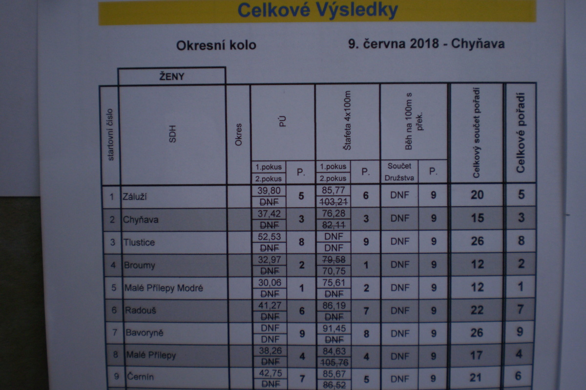 Okresní kolo v požárním sportu – Chyňava 9. 6. 2018