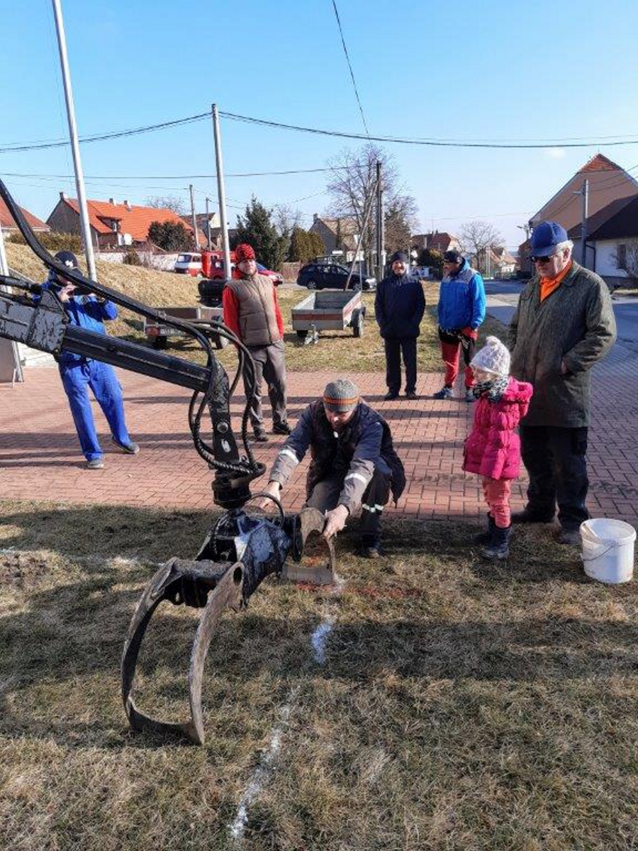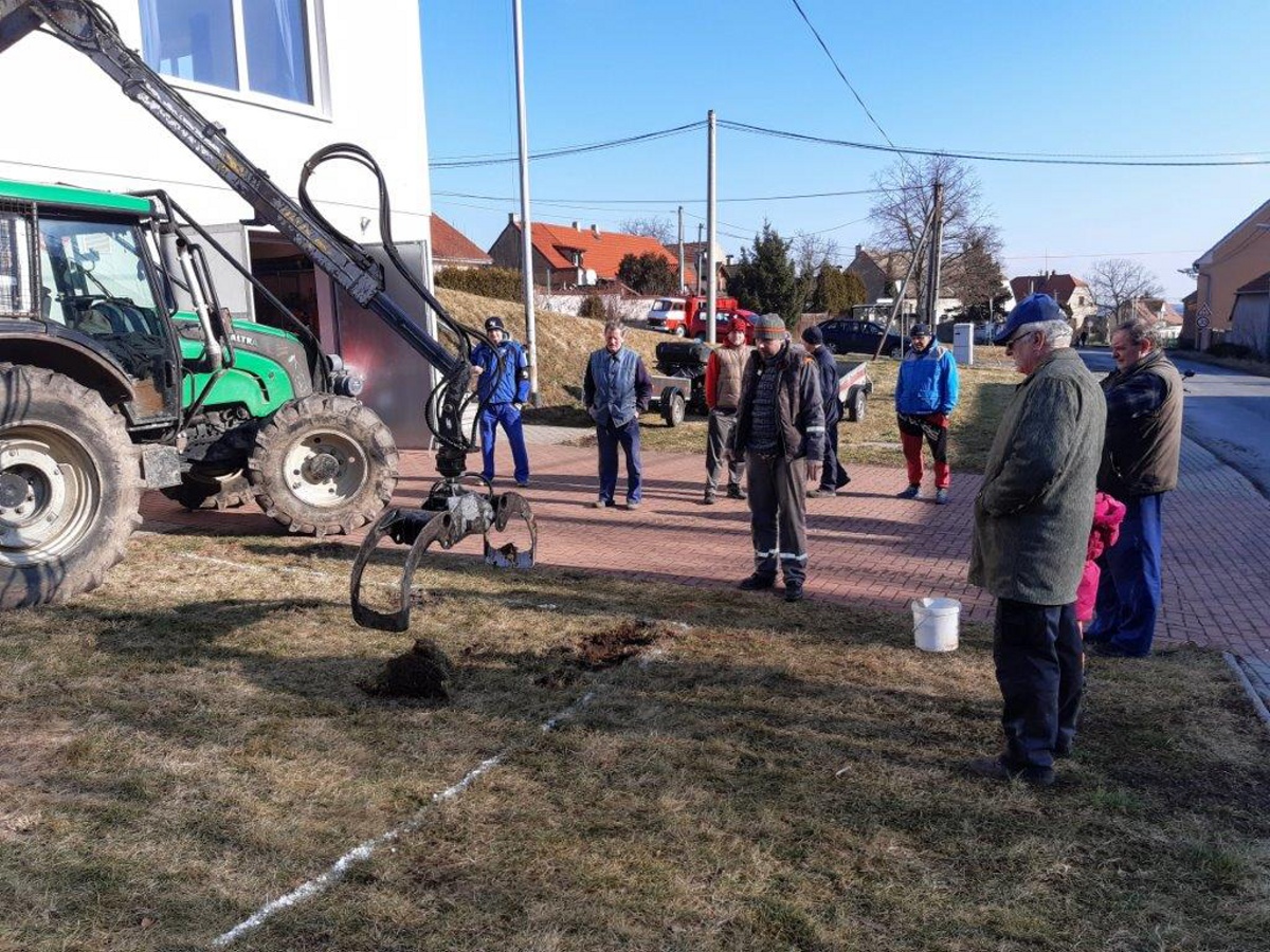 Základy pro dočasnou garáž věčné Avie na ploše před hasičárnou se začaly rodit díky silné ruce Jardy Špirita za přispění několika dohlížejících. Věkový průměr aktivních brigádníků nedosahoval ani sedmdesáti let!