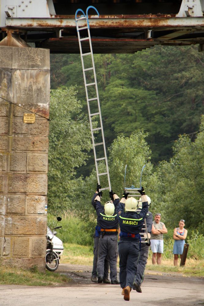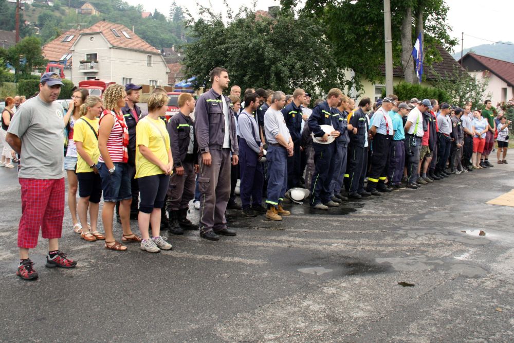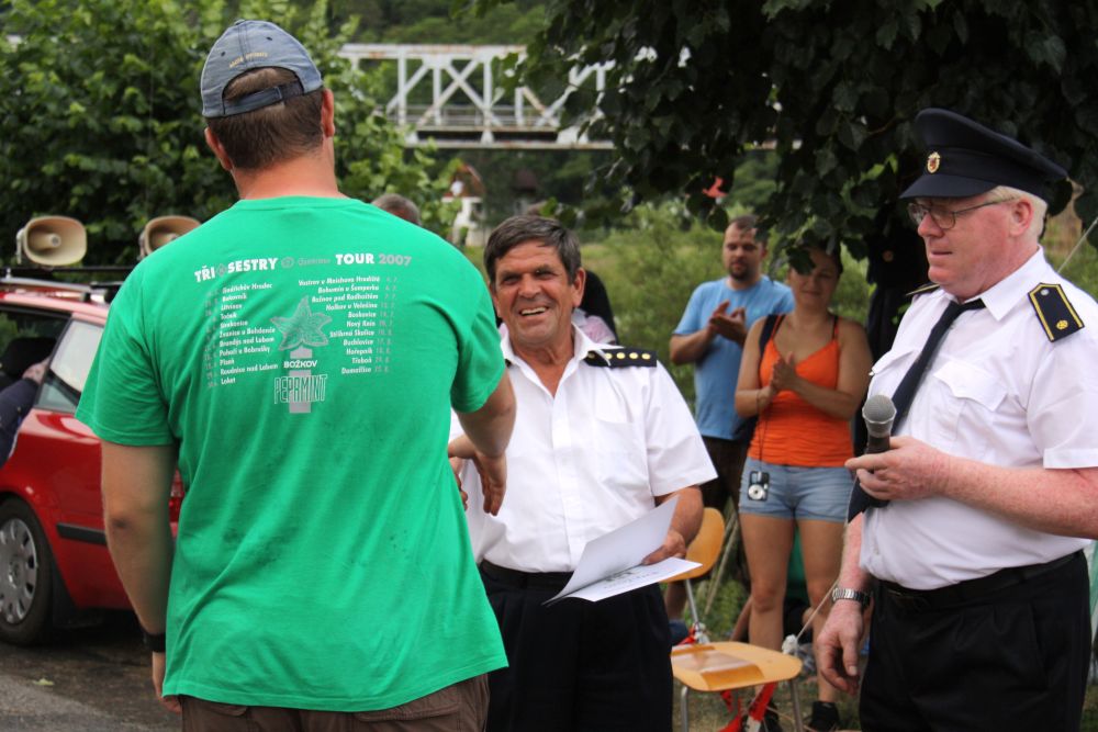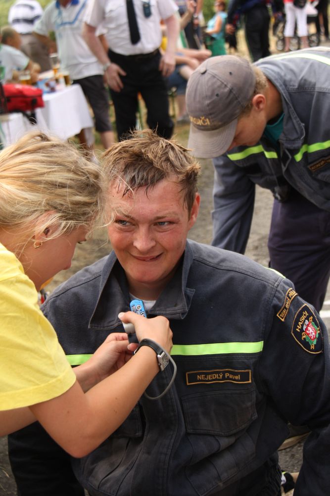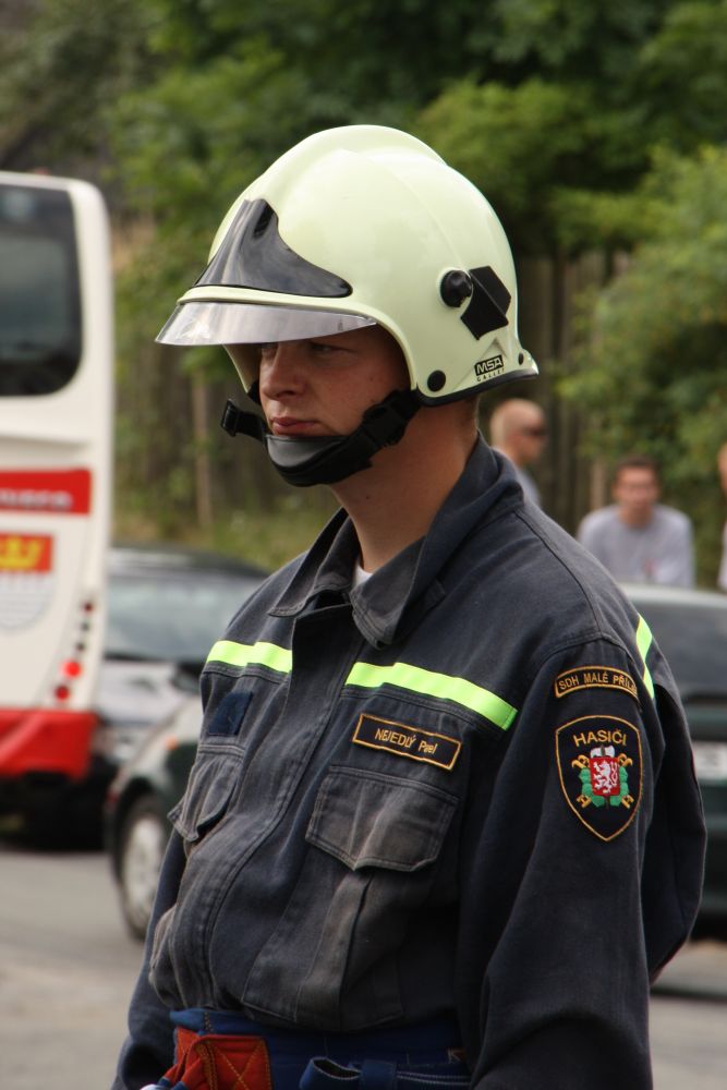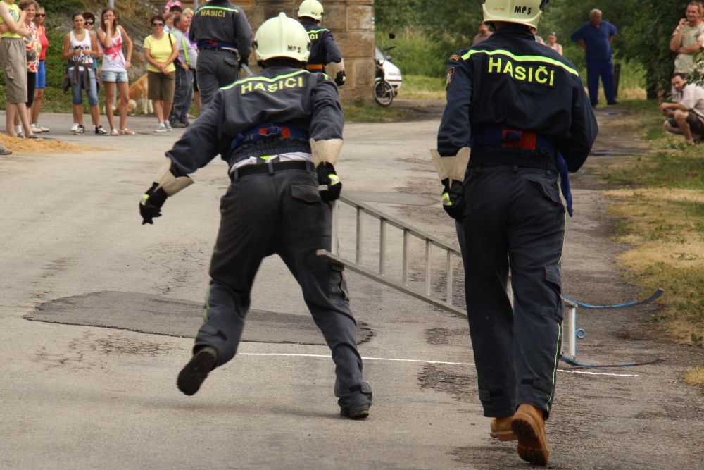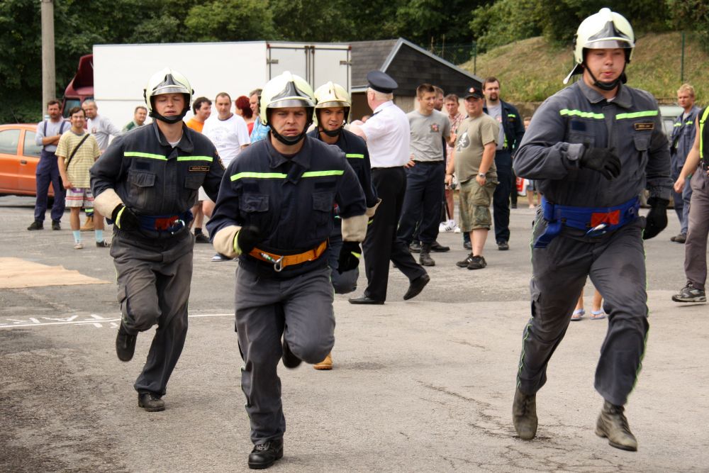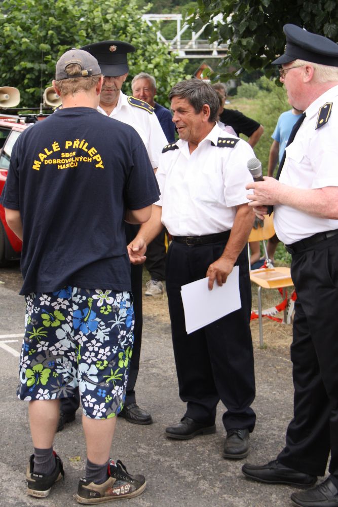Vzhledem k počtu přihlášených družstev bylo jasné, že soutěž bude probíhat do odpoledních hodin. Družstvo mužů Malé Přílepy "A" ve složení J. Rynda, D. Štetka, Smíšek a P. Nejedlý šlo na start jako čtvrté v pořadí a nasadilo s časem 10 minut 8 vteřin pro ostatní soutěžící laťku vysoko a do poslední chvíle se zdálo, že by to mohlo být první místo. Ani družstvu Malé Přílepy "B" ve složení M. Špaček, M. Tryner, L. Konvalinka a P. Kšír se nepodařilo tento čas překonat (doběh do cíle s časem 10 minut 24 vteřin) i když zůstalo v těsném závěsu za družstvem "A".