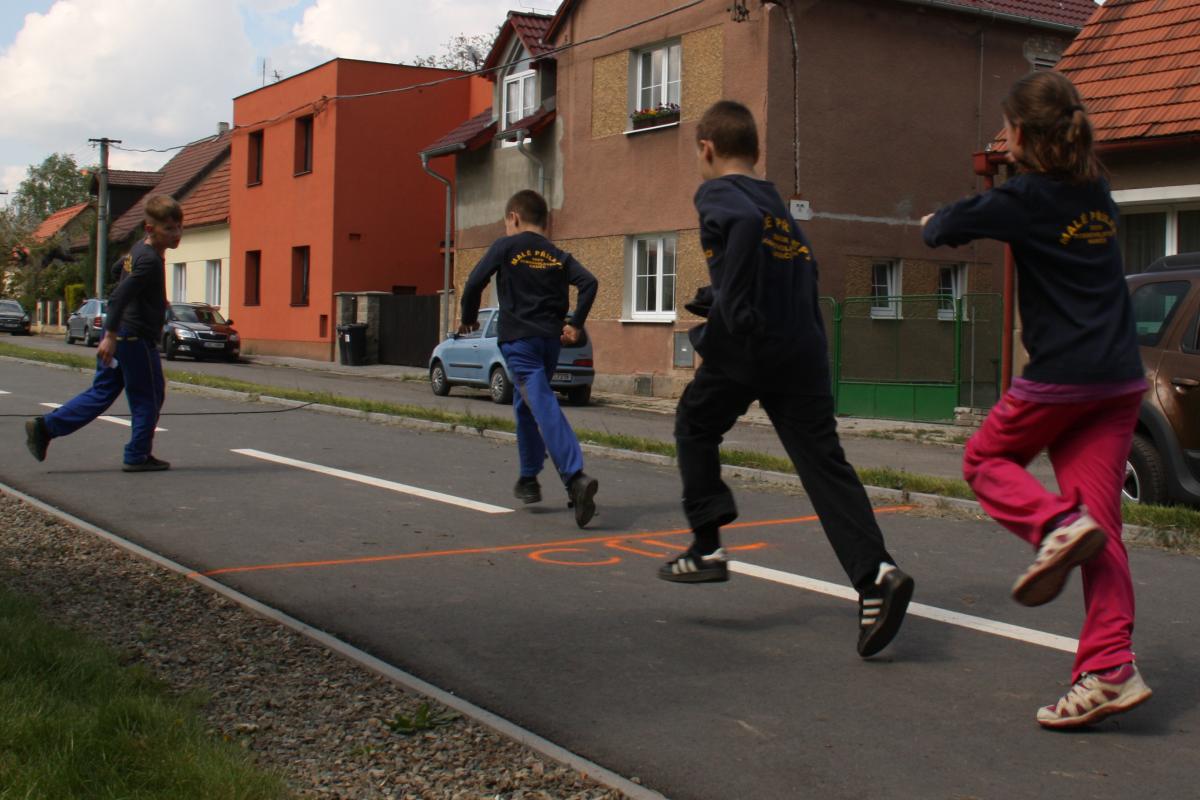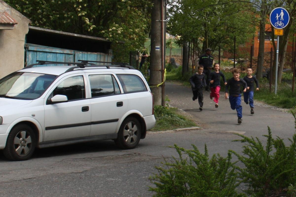Závod mladších probíhal v pohodě až do chvíle, kdy přišla zpráva, že jeden z Přílepských kluků má asi výron a že ho přivezou z tratě autem. Nevěděl jsem, kdo to bude, ale tipoval jsem správně, byl to Mates což byla z tý partička asi nejlepší varianta :-) a přijel skutečně s výronem. Nicméně zbytek družstva pokračoval v soutěži a Přílepy skončily na hezkém pátém místě. Nakonec mi děti hlásili, že chtěli doběhnout všichni a tak Mates běžel s výronem skoro přes dvě stanoviště za pomoci ostatních členů družstva a tak nejen že družstvo obdrželo diplom za páté místo, ale i diplom za obětavost a pomoc kamarádovi.