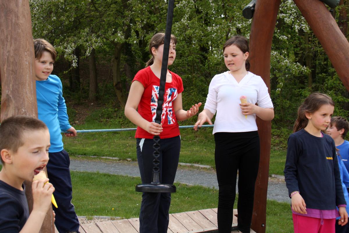 I přes drobné zádrhely doběhli starší na třetím místě a zaslouženou odměnou byly medaile z čokolády. Marťa jako už pravidlem byla v cíli chvilu rozhořčená, že na laně nevěděla, která značka platí, že si na jednom stanovišti nenechali napsat čekačku a taky, že si na laně trochu odřela nohu.