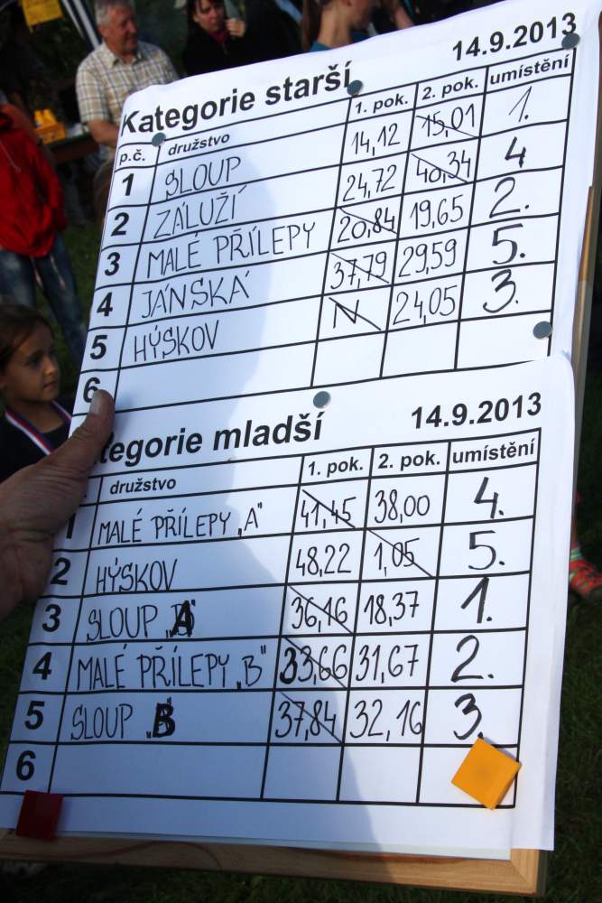 I přesto že se našim družstvům celkem dařilo, tak první místa v obou kategoriích obsadila družstva ze Sloupu a naše družstva se musela spokojit s druhým místem.