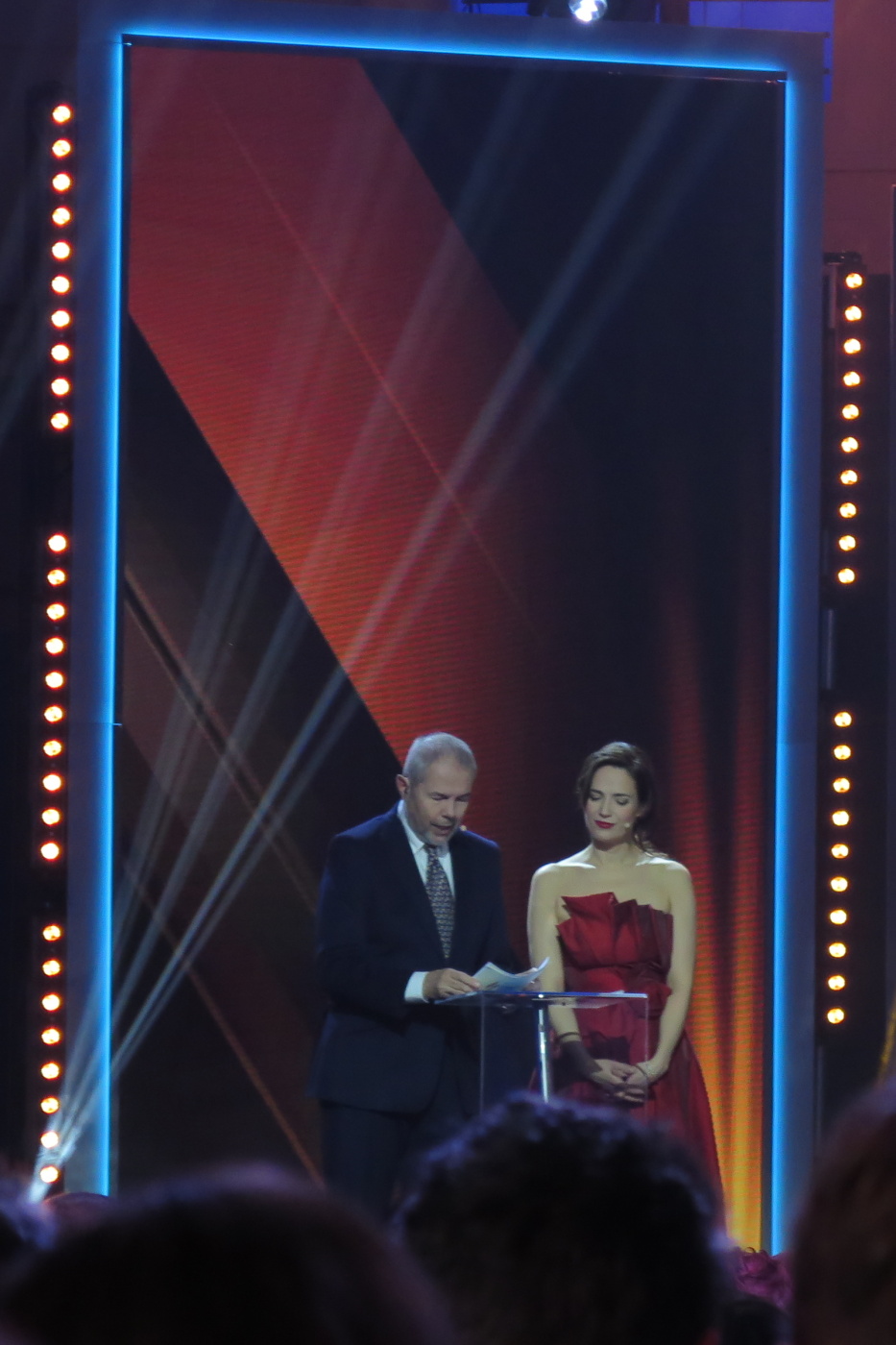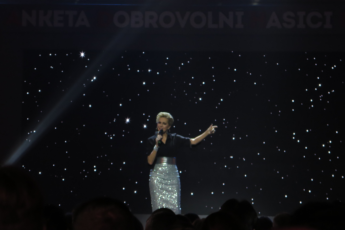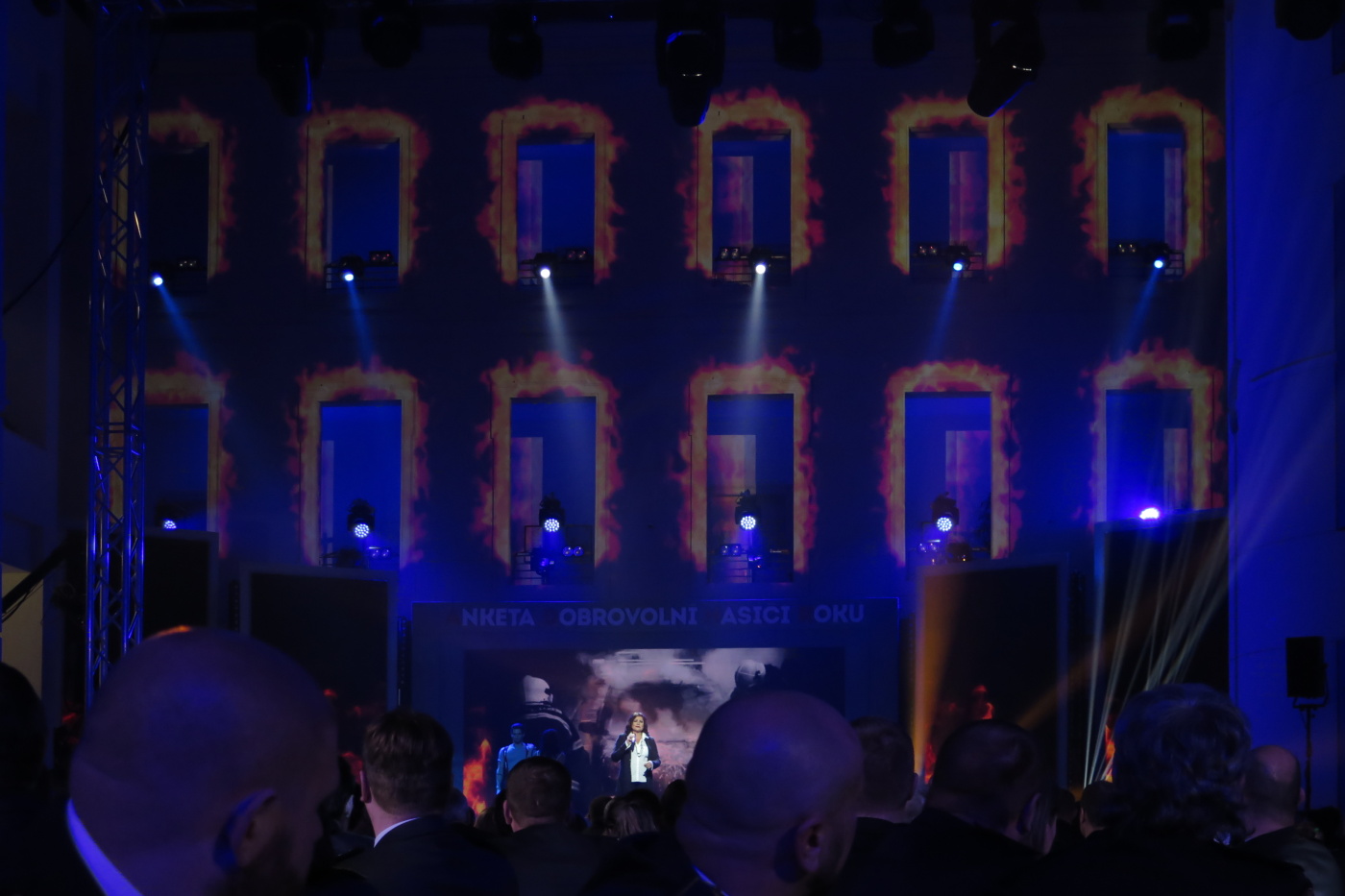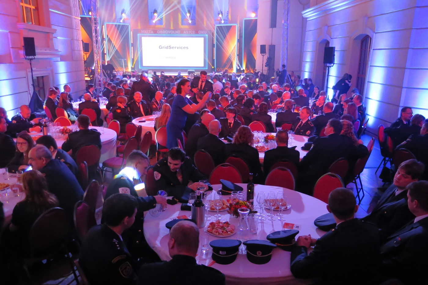 Nechtěli jsme přijet pozdě tak jsme vyrazili se značným předstihem ve 13:30 a měli jsme tak v Brně dostatek času na pozdní oběd v restauraci U Lucerny a nutno přiznat, že jsme si všichni skutečně pochutnali a stihli jsme se včas přesunout do dvorany. Hned nám bylo jasné, proč byla pozvánky pro sbory omezena na 3 zástupce. Letošní anketu moderovala známá a příjemná moderátorská dvojice Marek Eben a Tereza Kostková. Profesionalita této moderátorské dvojice byla v průběhu večera několikrát prověřena při některých neplánovaných situacích a nutno přiznat, že zrovna ty neplánované situace zaznamenaly největší úspěch. Slavnostní večer zahájila patronka akce Ilona Csáková novou písní složenou pro hasiče.