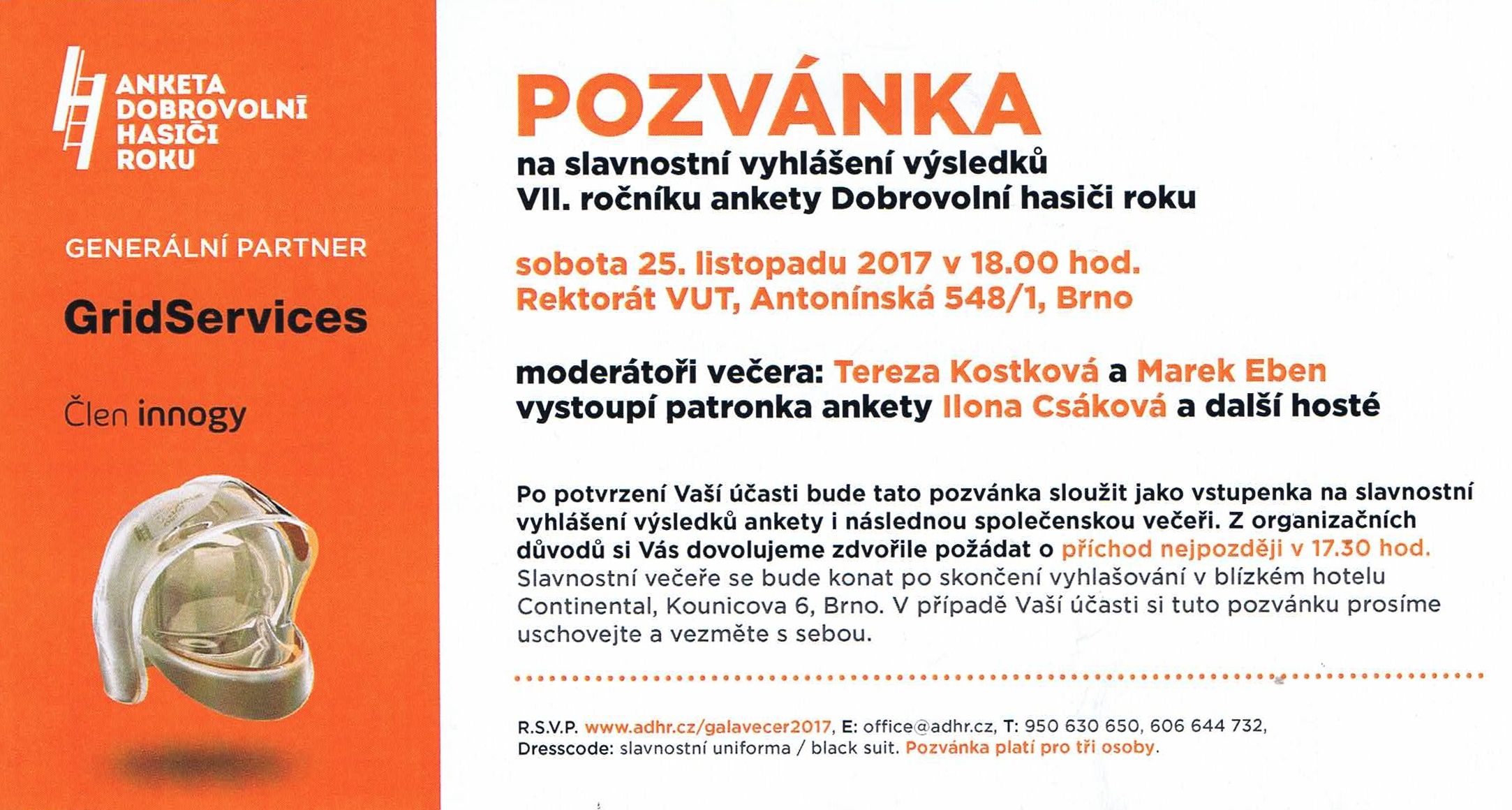 Vyhlášení výsledků ankety Dobrovolní hasiči roku 25.11.2017