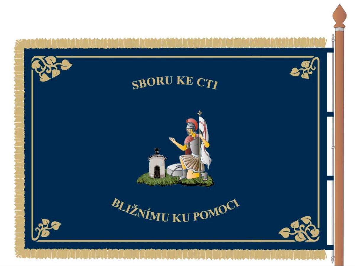 Předkládáme k připomínkování grafické návrhy řešení slavnostního hasičského praporu z hlediska navržených motivů (odstíny barev zejména modrý podklad jsou orientační, modrá bude ve skutečnosti sytější).