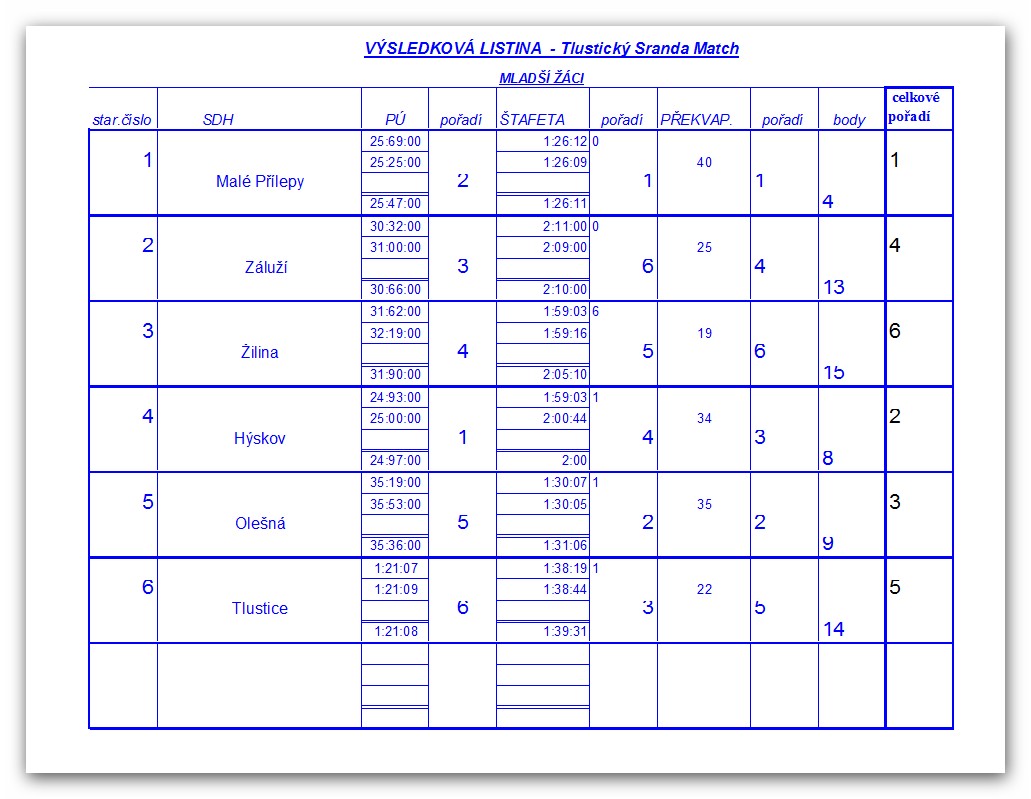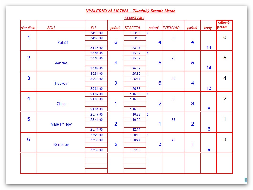 Nebyly vyvěšené průběžné výsledky a tak jsme do poslední chvíle nevěděli, jak to dopadne. O to příjemněji se poslouchalo při vyhlášení vítězů vyvolání našich družstev na prvním místě a to v obou kategoriích.