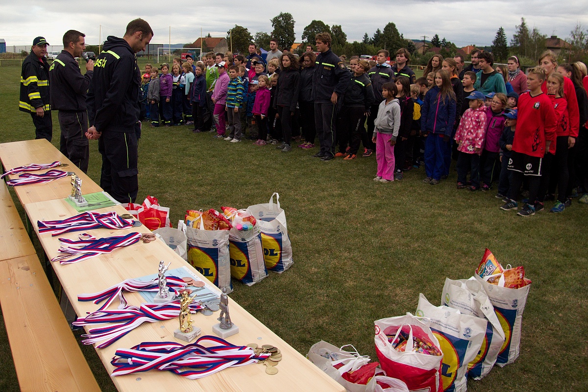 Soutěžili jsme v sestavě mladší: Lukáš Soukup (koš, skok v pytli a víčka), Betynka Zajíčková (béčko a víčka) Lukáš Mejstřík (béčko spoj a podběhnutí překážky), Honza Kučera ( rozdělovač, žebřík na štafetě a víčka), Deniska Ryndová (rozdělovač, skok v pytli a víčka), Kačka Špačková (levý proud, stříkání na plechovku a víčka), Žofka Radechovská (pravý proud, žebřík a víčka), Míša Stehlíková (skákání v pytli a víčka)
